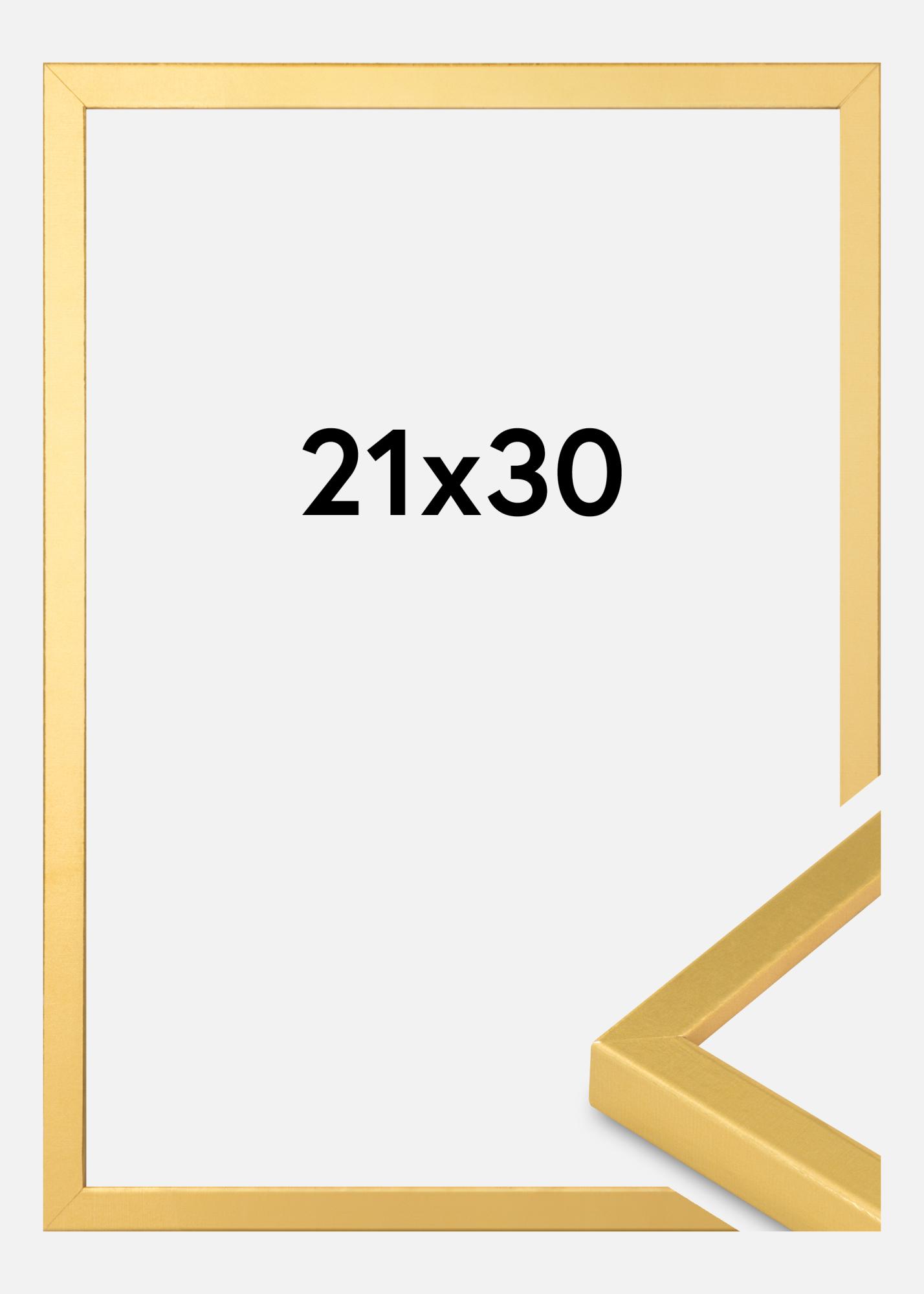 Rama aurie este proiectată pentru a se potrivi motivelor de dimensiunea 21x30 cm. Cu o listă de ramă de 12 mm lățime și o adâncime de 16 mm, oferă un sentiment stabil și robust fără a compromite eleganța. Rama este echipată cu agățătoare metalice pe partea din spate, ceea ce face ușor de agățat atât orizontal, cât și vertical, în funcție de cum se potrivește cel mai bine cu motivul tău.