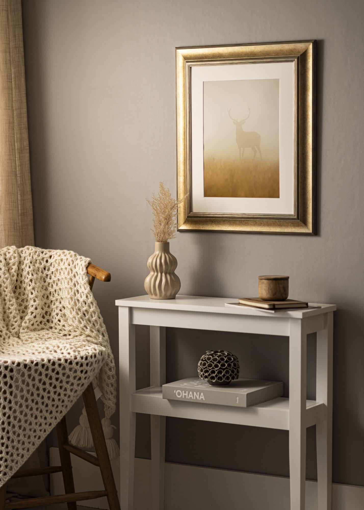 Decorațiunile subțiri și liniare de-a lungul marginilor contribuie la aspectul elegant al ramei, în timp ce suprafața periată, cu nuanțe subtile de culoare, subliniază adâncimea și textura sa. Tonul de argint închis creează o senzație clasică și atemporală care se potrivește cu majoritatea stilurilor de interior.