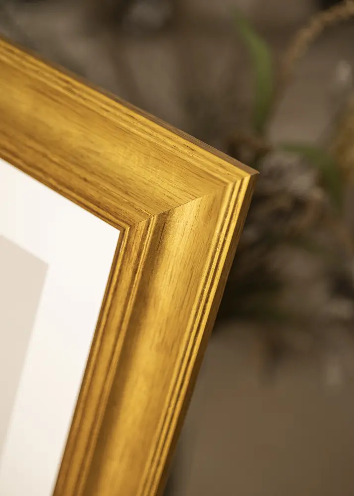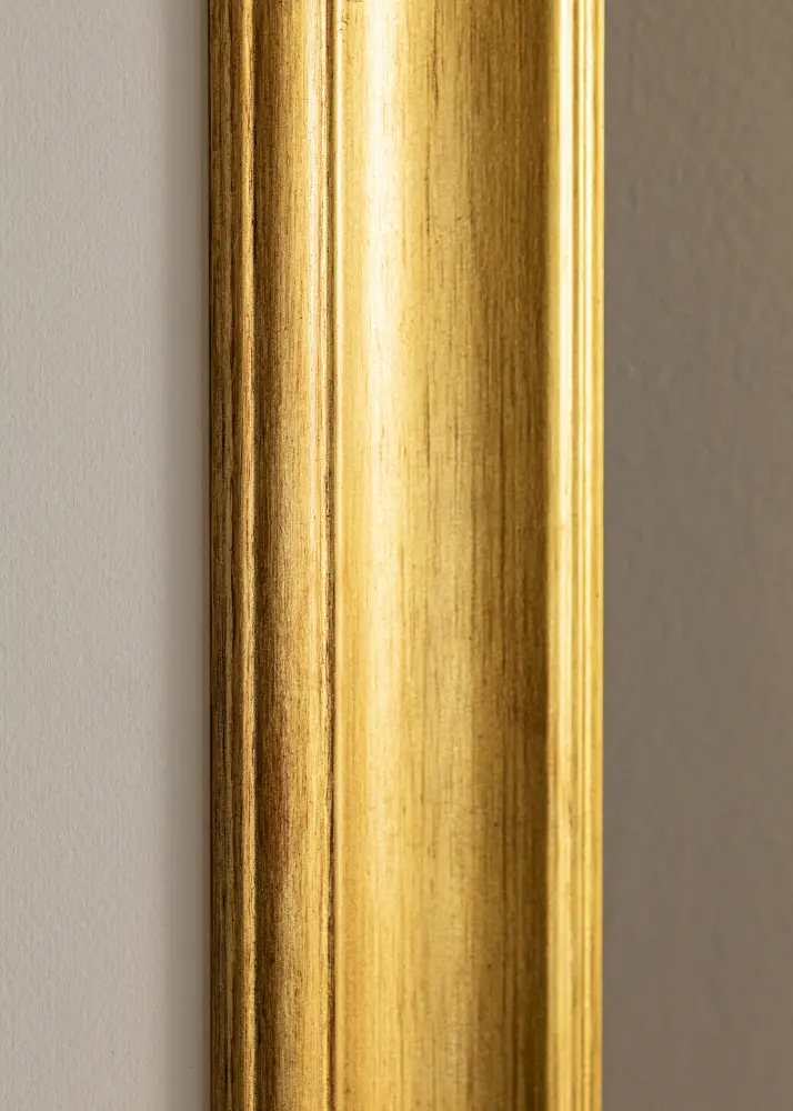 Suprafața periată a ramei pentru tablouri are nuanțe subtile care creează o senzație ușor patinată, oferind o dimensiune suplimentară decorului dumneavoastră. Liniile subțiri de-a lungul marginilor contribuie cu o bogăție sofisticată a detaliilor, în timp ce tonul cald auriu consolidează expresia clasică a ramei. Acest lucru o face o alegere excelentă atât pentru medii moderne, cât și tradiționale.