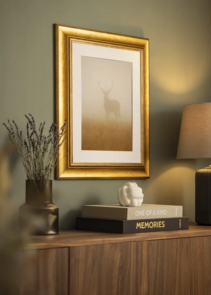 Reține că, deoarece această ramă este făcută la comandă, nu se poate anula achiziția după efectuarea comenzii. Alege Belfast aur închis pentru a oferi imaginilor tale încadratura pe care o merită și pentru a crea o atmosferă stilată în casa ta.