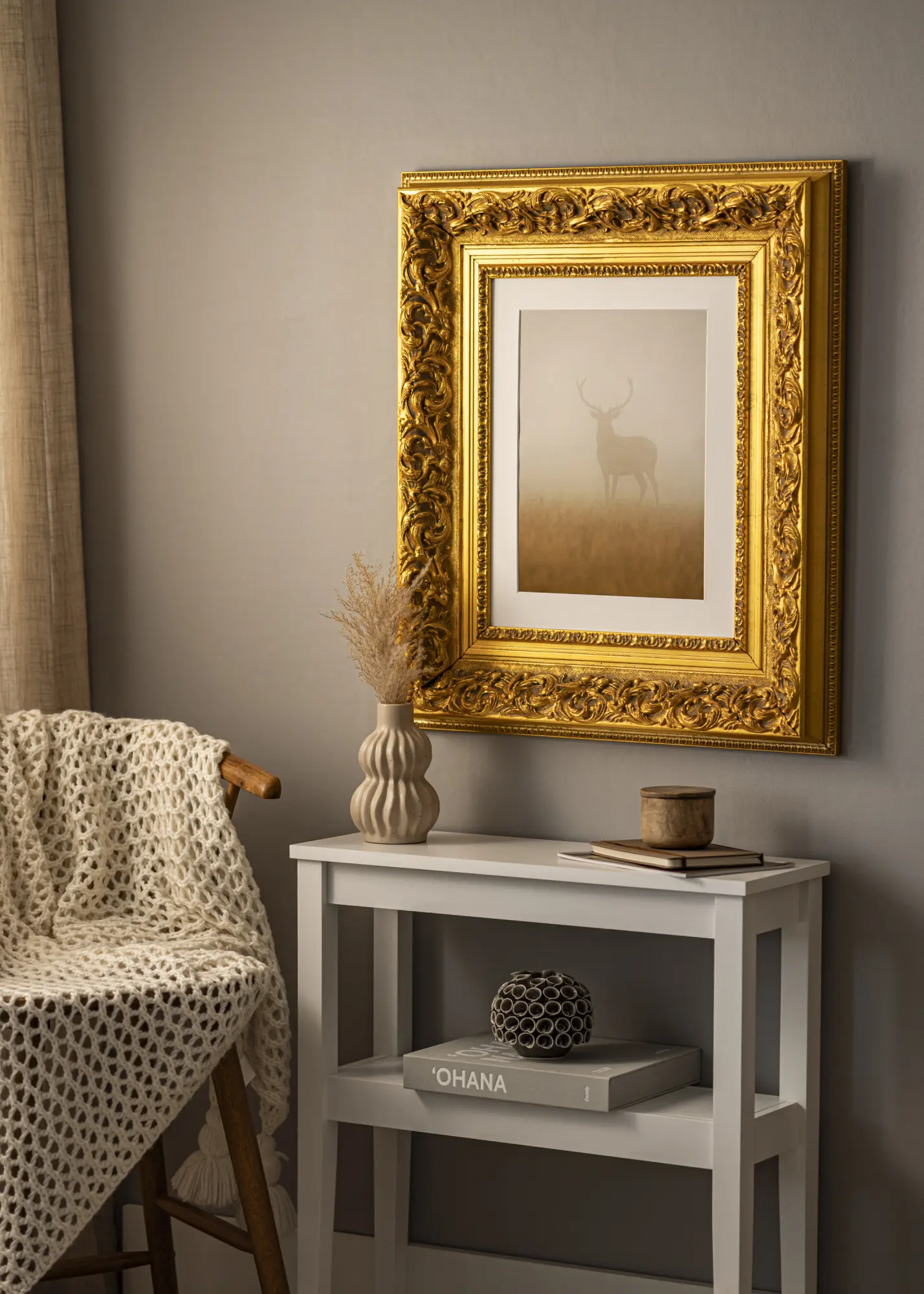 Rama noastră Birmingham Aur este o ramă de tablou realizată la comandă, fabricată în atelierul nostru propriu de rame. Cu tonul său profund de aur și designul clasic baroc, devine o completare elegantă pentru orice cameră. Această ramă foto are o listă de ramă de 152 mm lățime și o adâncime de 74 mm, oferindu-i o prezență impresionantă pe perete.