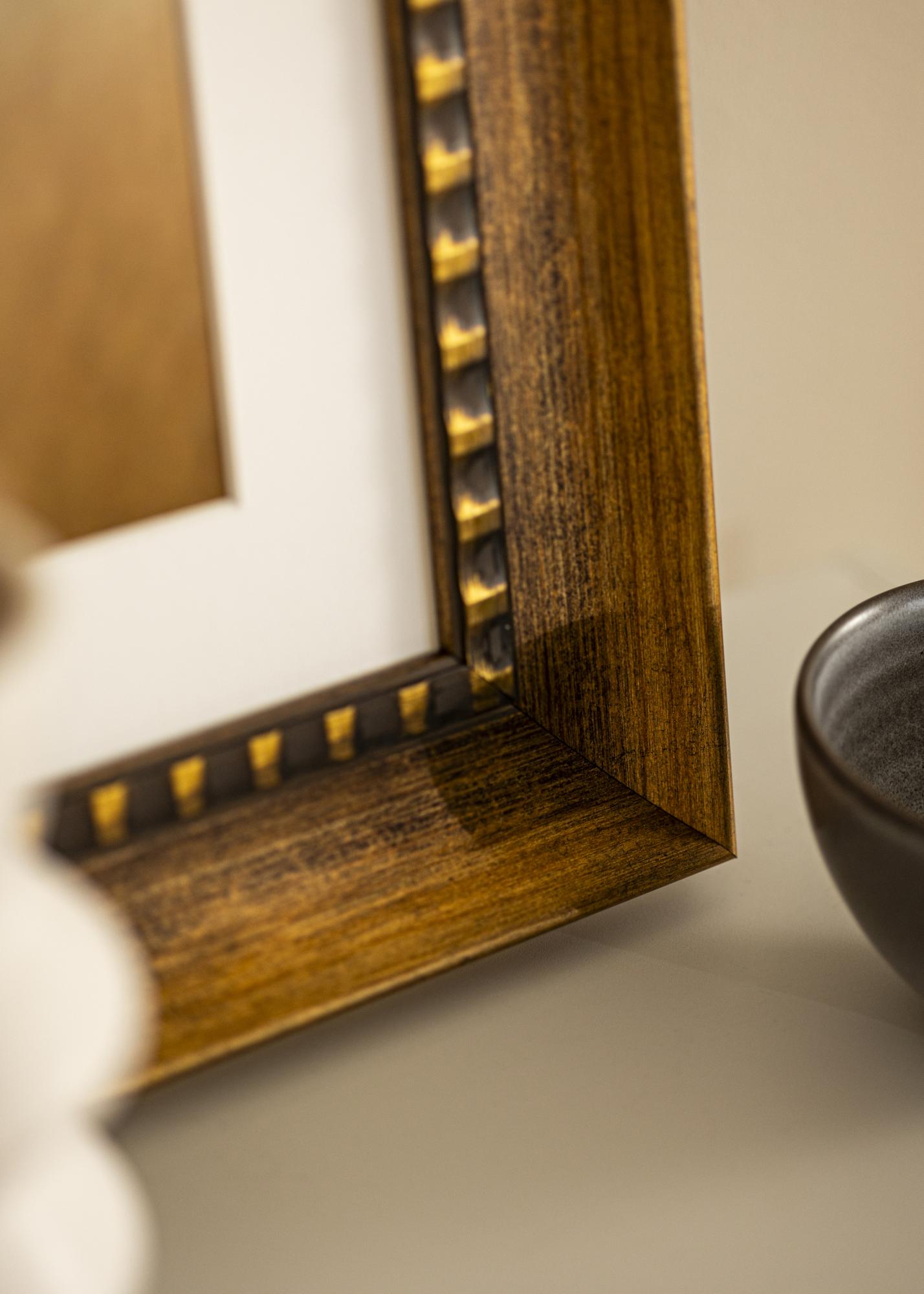 Rama Camden Aur este un cadru de tablou la comandă, fabricat de noi, ceea ce îți oferă posibilitatea de a obține exact dimensiunea de care ai nevoie pentru opera ta de artă. Cu o culoare brun cald și un finisaj antic elegant, această ramă foto oferă o încadratură sofisticată pentru imaginile tale.