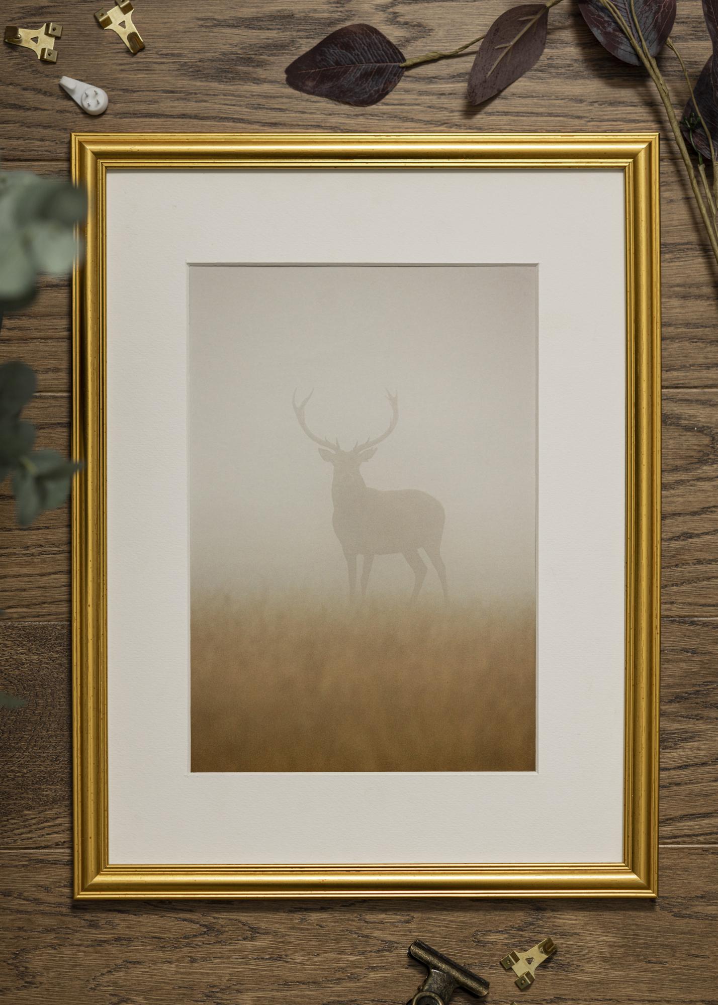 Ramă elegantă de culoare aurie cu accente roșii în design clasic și atemporal. Cu culoarea sa neutră de argintiu, aceasta este o ramă care se potrivește aproape cu orice motiv și context.