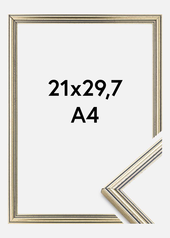 Cadru de argint elegant cu inserții negre în design clasic atemporal. Cu culoarea sa neutră, argintie, acest cadru se potrivește aproape oricăror imagini și contexte.