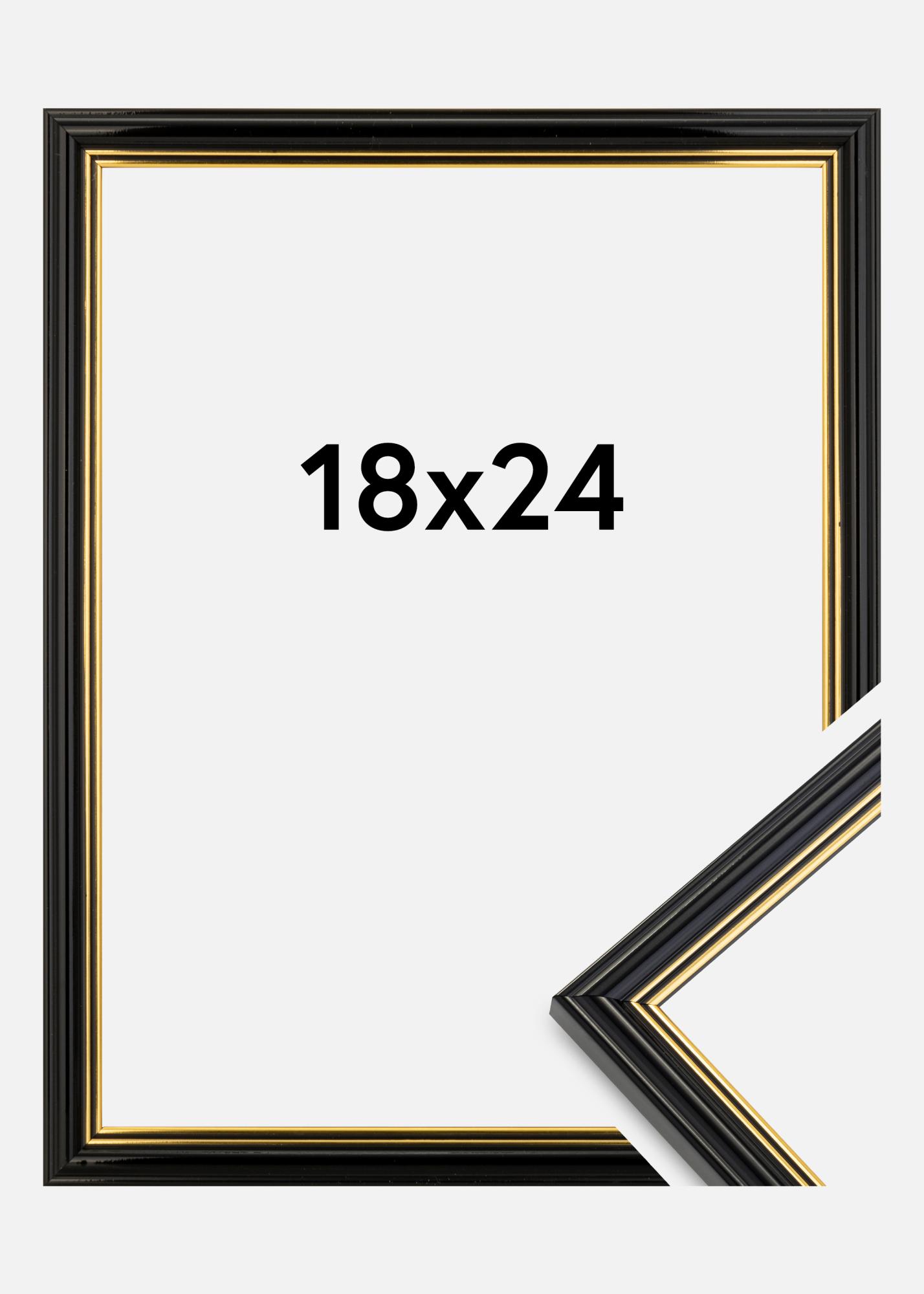 Dacă ești în căutarea unei rame clasice cu un aspect elegant la un preț bun, "Classic Negru" este ceea ce cauți. Cu profilul său negru rotunjit, decorat cu două linii subțiri aurii, aceasta este o