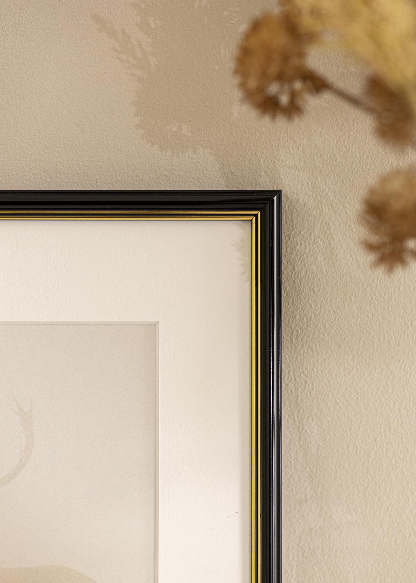 Găsiți rama potrivită »Dacă cauți o ramă clasică cu un aspect elegant la un preț bun, "Classic Negru" este ceea ce cauți. Cu profilul său negru rotunjit, decorat cu două linii subțiri aurii, aceasta este
