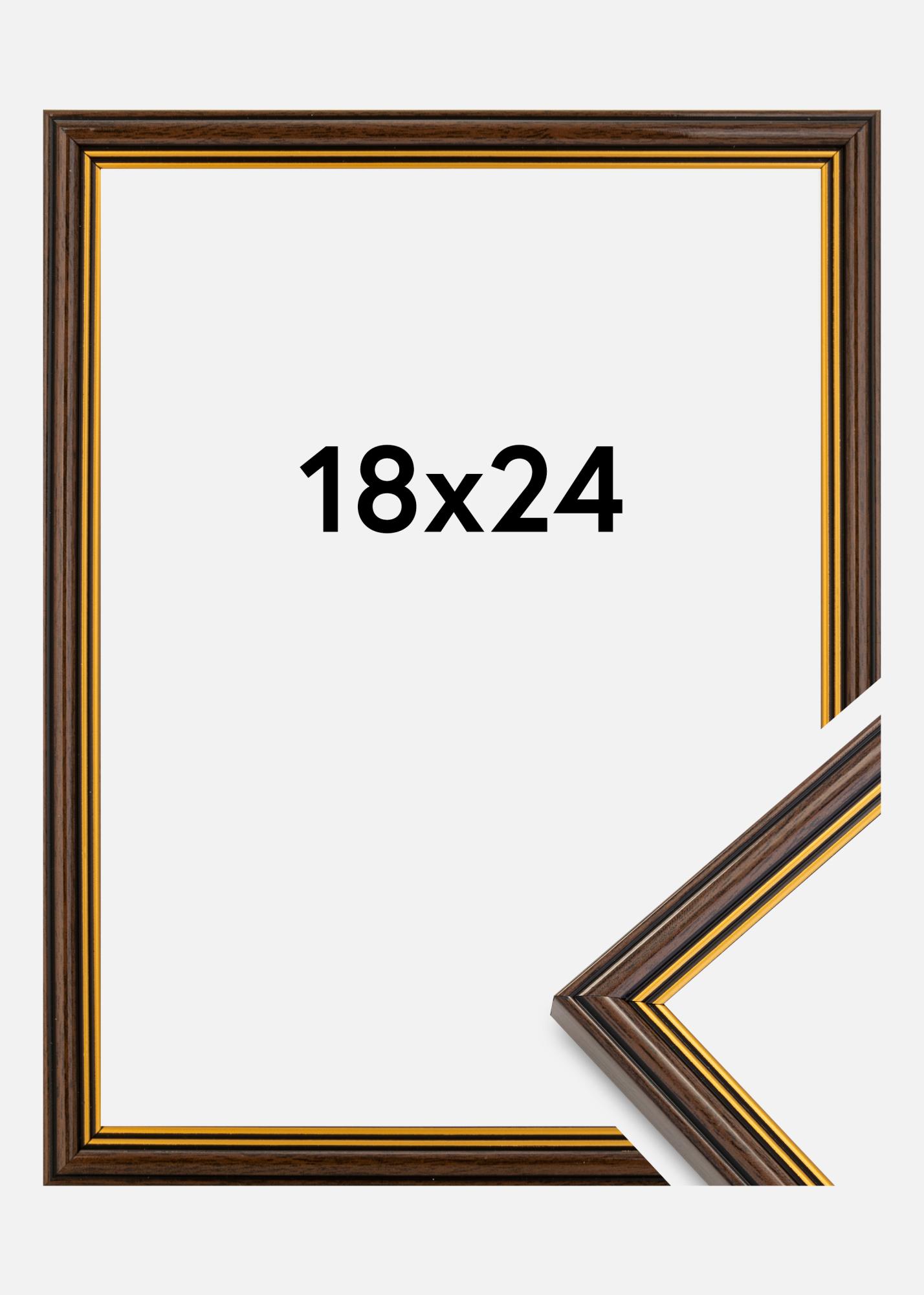 Dacă cauți o ramă clasică într-o culoare închisă de lemn, "Classic Nuc" este o alegere excelentă. Rama are o culoare închisă de nuc și are două linii subțiri aurii aproape de motiv.