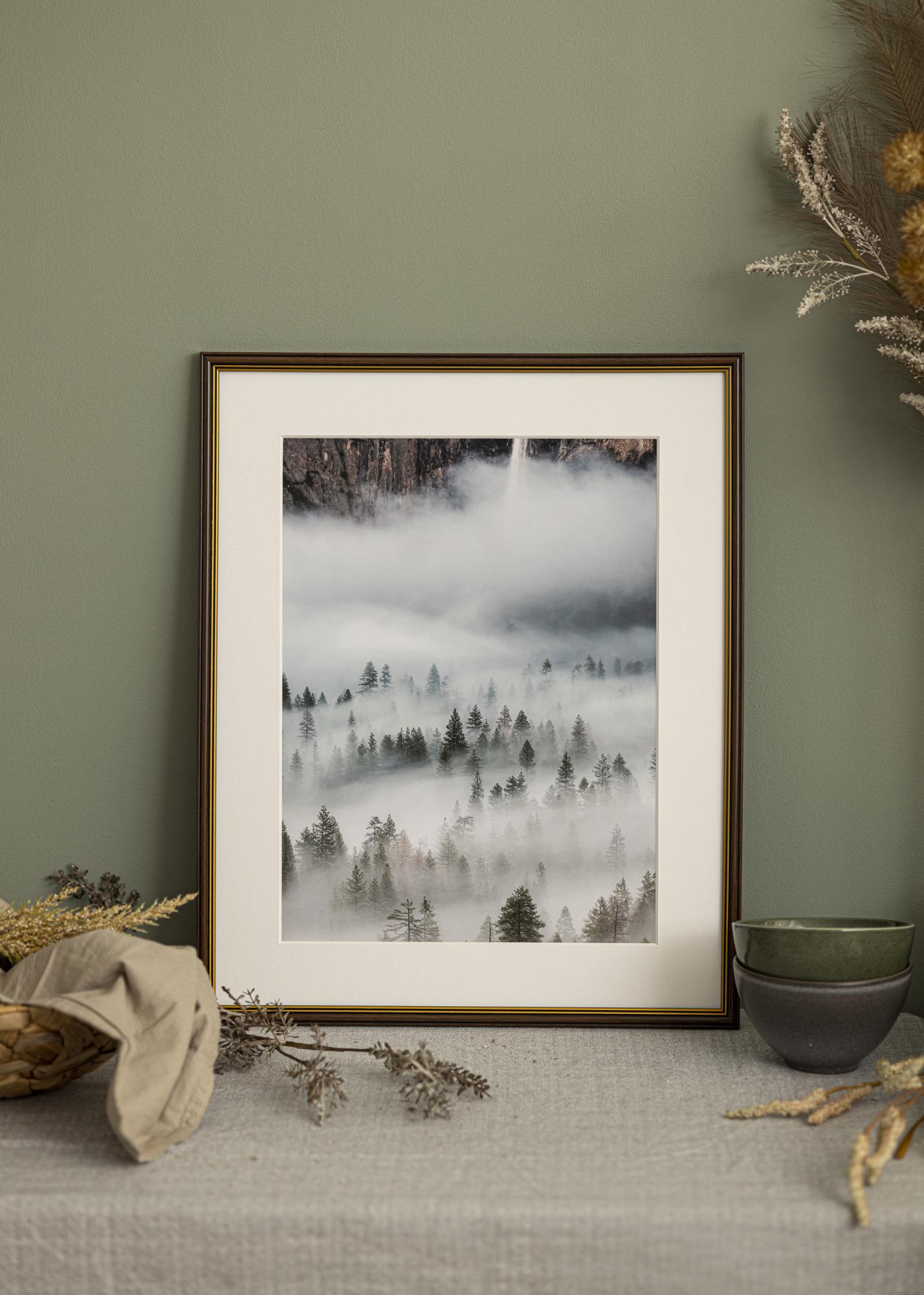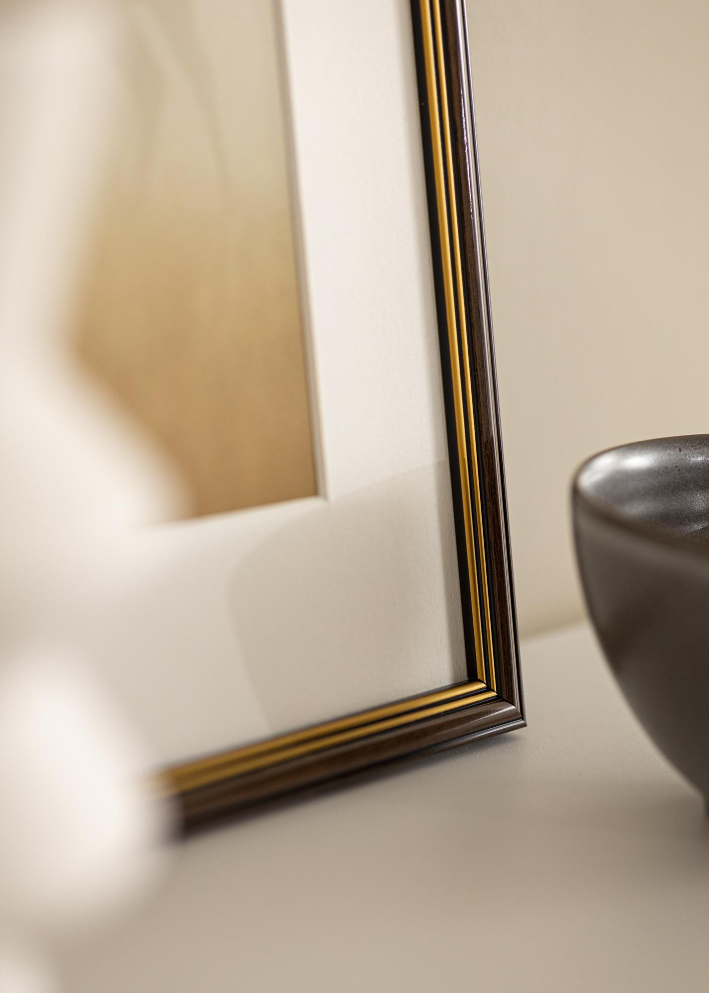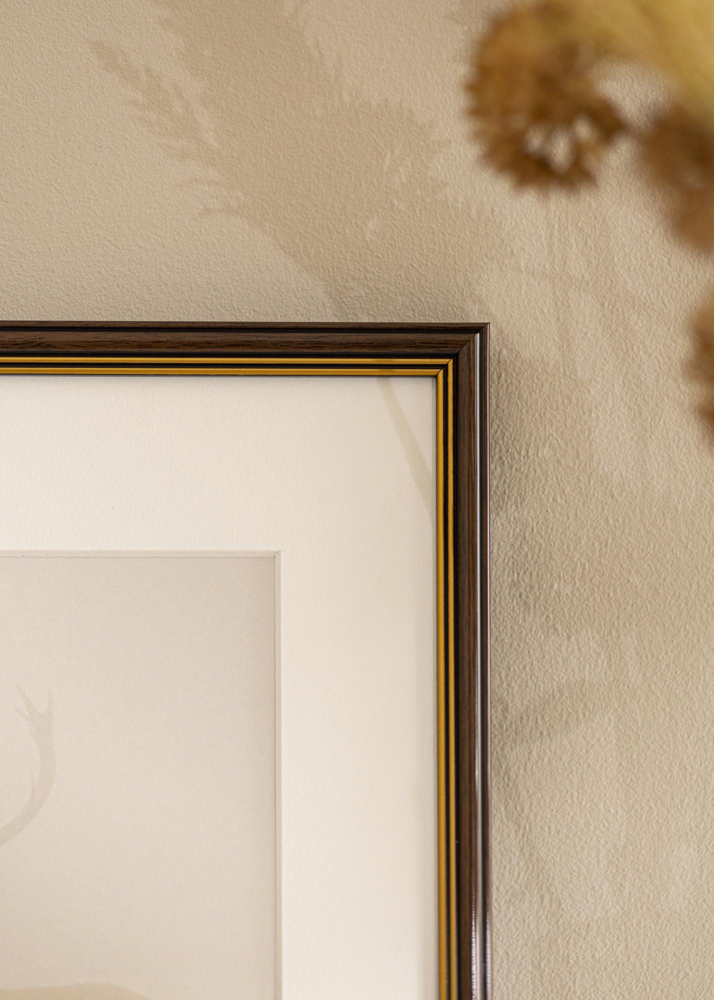 Dacă cauți o ramă clasică într-o culoare de lemn închis, "Classic Nuc" este o alegere excelentă. Rama are o culoare de nuc închis și are două linii subțiri aurii lângă motiv.
