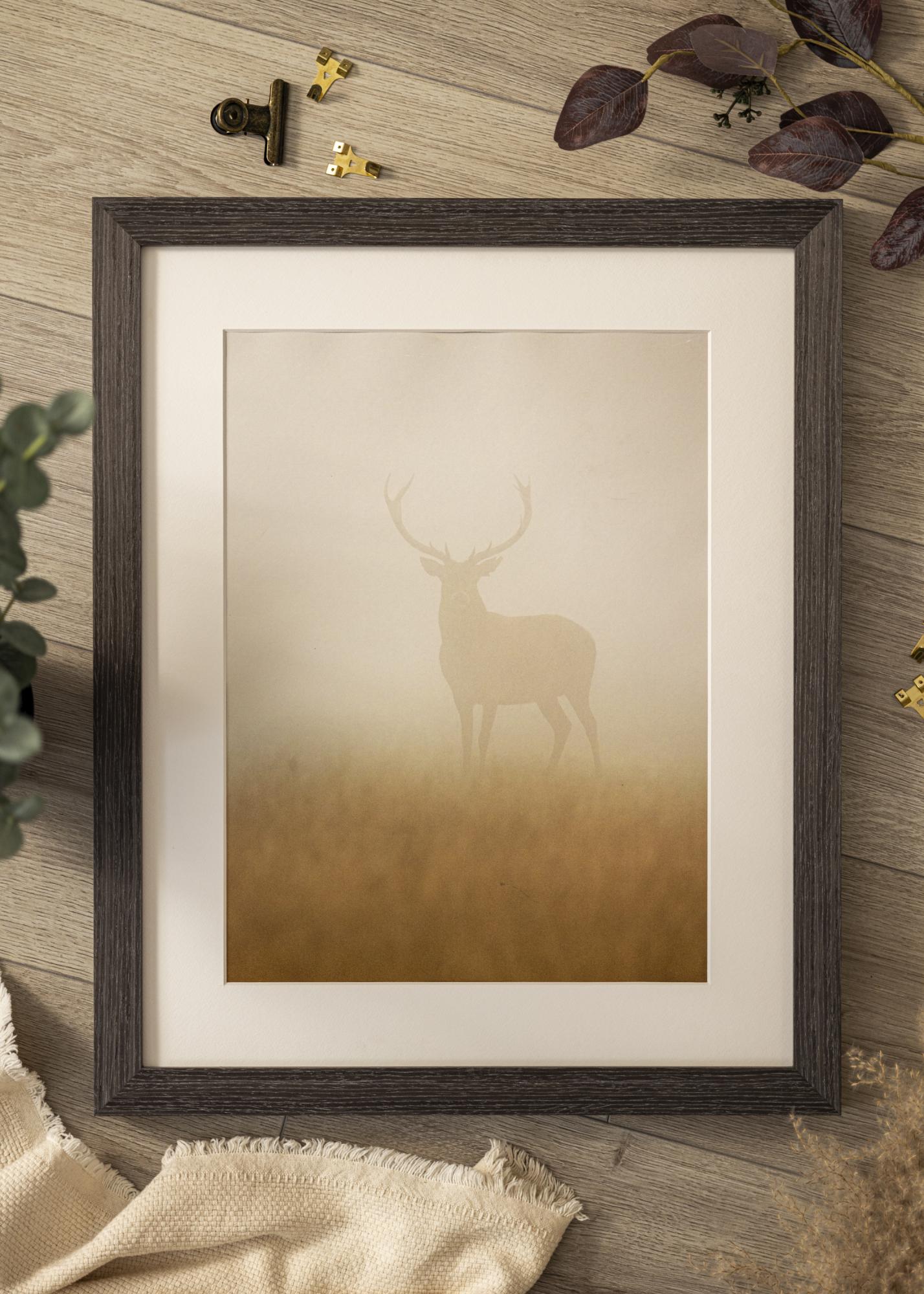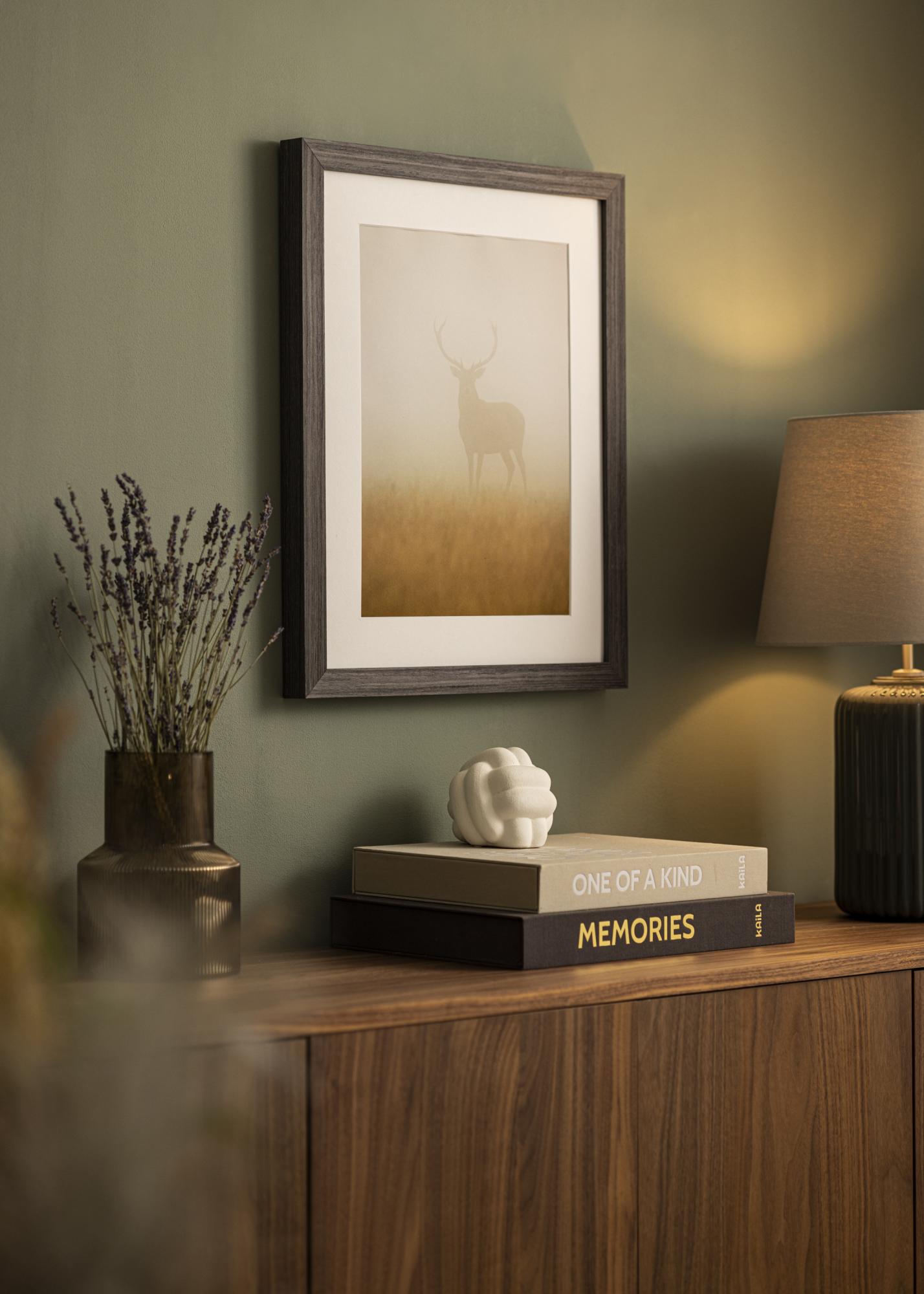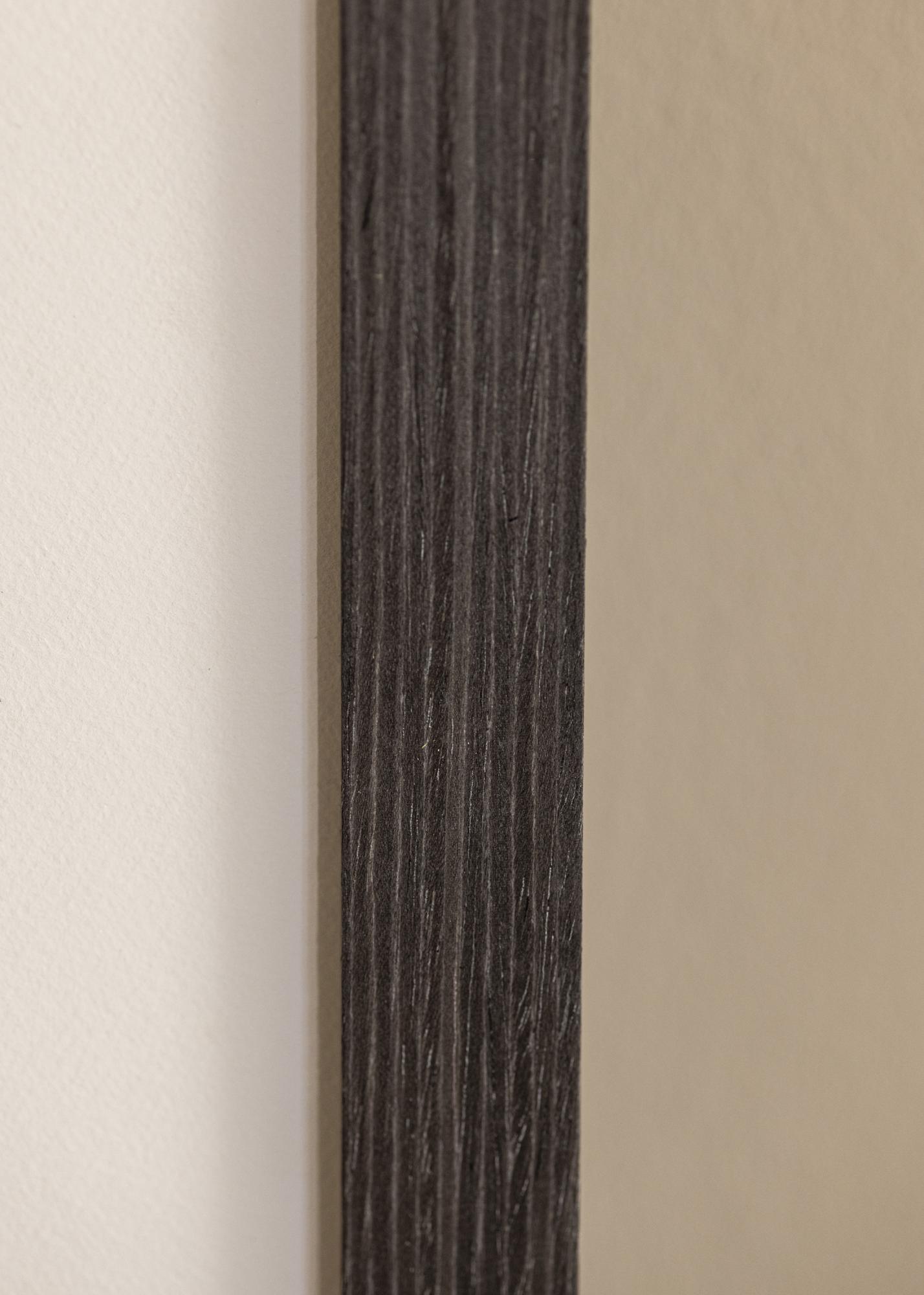 Această ramă de tablou este fabricată din pin și are un finisaj de lemn închis cu o structură clară de nervuri. Nuanța sa profundă, aproape maro-negru, permite texturii naturale a lemnului să iasă în evidență printr-o suprafață ușor mată, accentuând aspectul său natural. Profilul său îngust și drept oferă o expresie discretă și elegantă care se potrivește în majoritatea mediilor.
