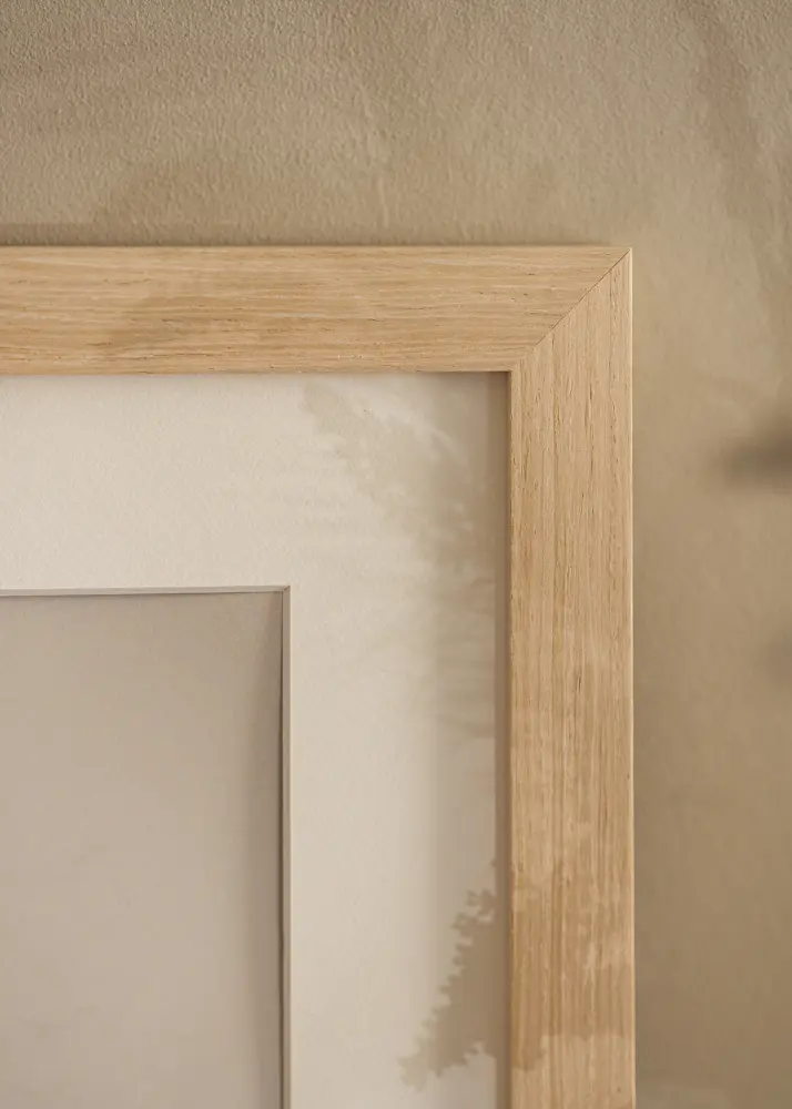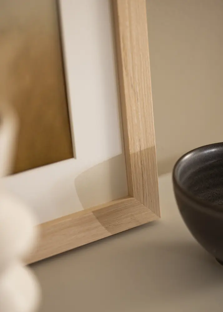 Rama are o listă de lățime de 28 mm și o adâncime de 33 mm, oferind o senzație stabilă și robustă. Fabricată din pin, această ramă este atât durabilă, cât și elegantă. Suprafața are un finisaj mat de mătase care evidențiază texturarea fără a reflecta lumina, asigurându-se că imaginile dumneavoastră sunt întotdeauna în prim-plan. Profilul drept contribuie la o expresie stilată și armonioasă.