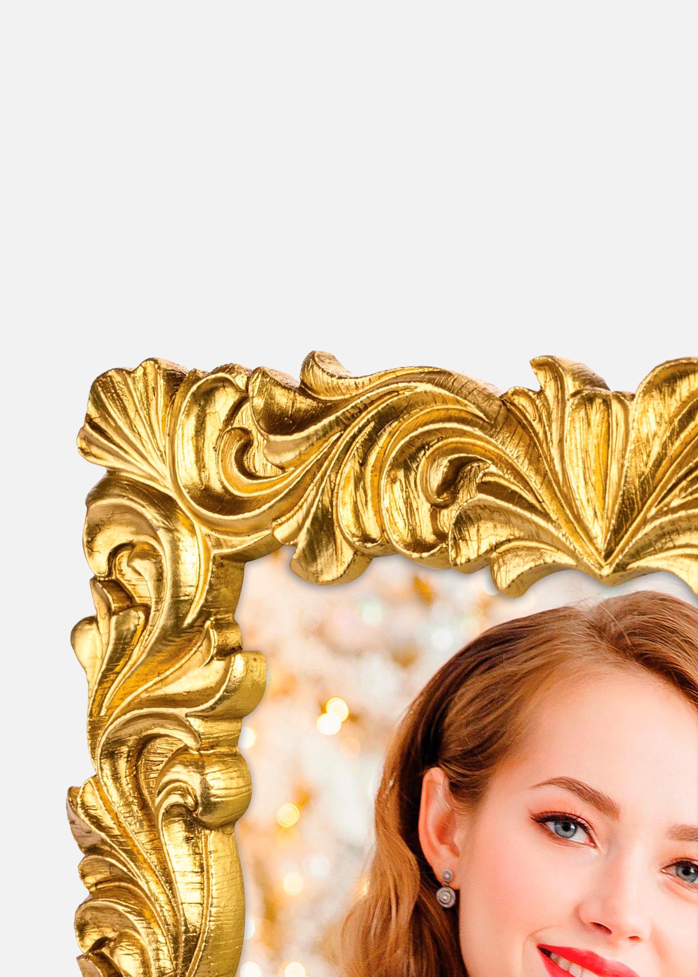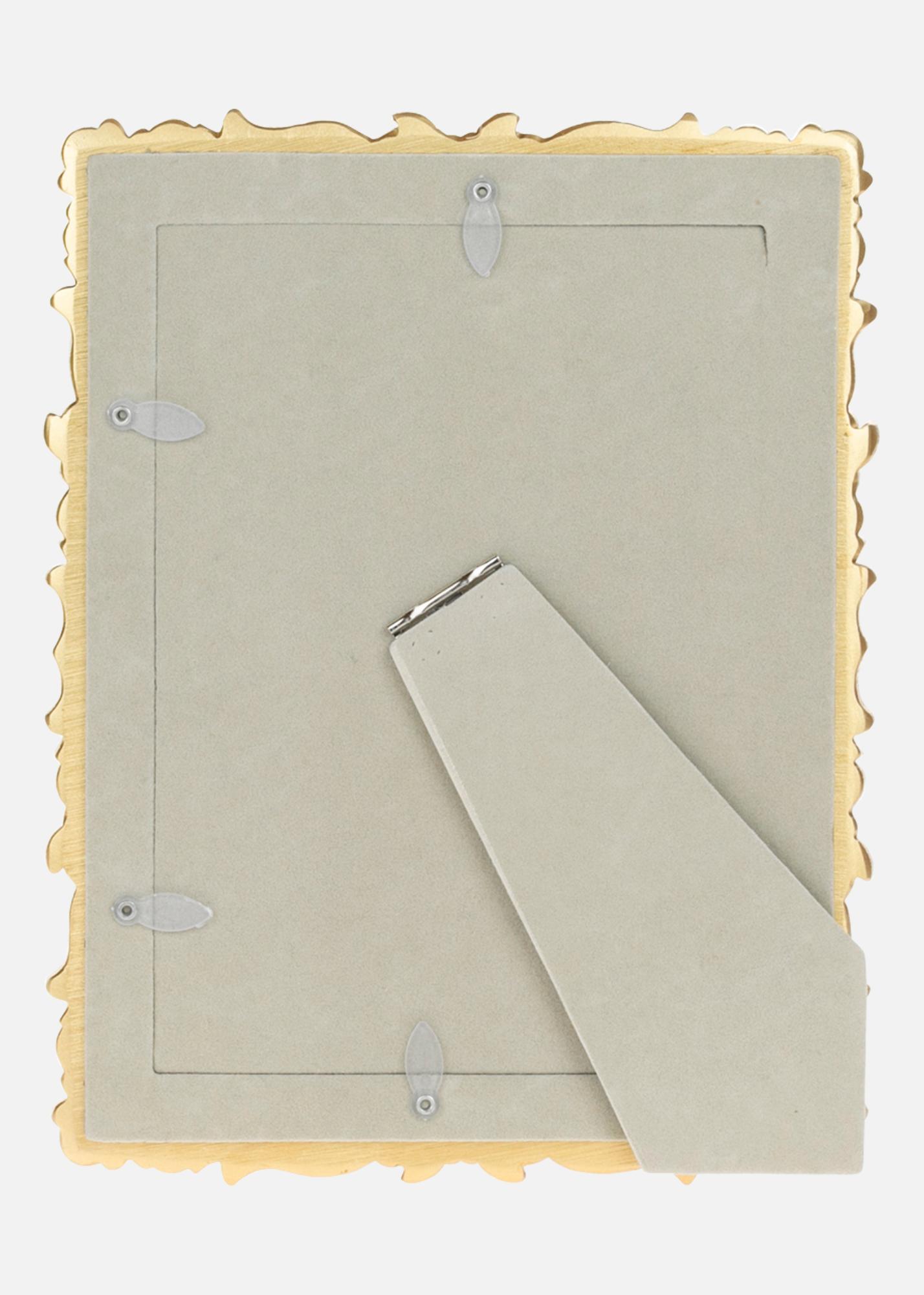 Finisajul aurit al acestui cadru adaugă o strălucire caldă și primitoare oricărei camere. Indiferent dacă îl plasați pe perete sau pe o masă, acest cadru va atrage privirile și va completa decorul cu farmecul său distinct.