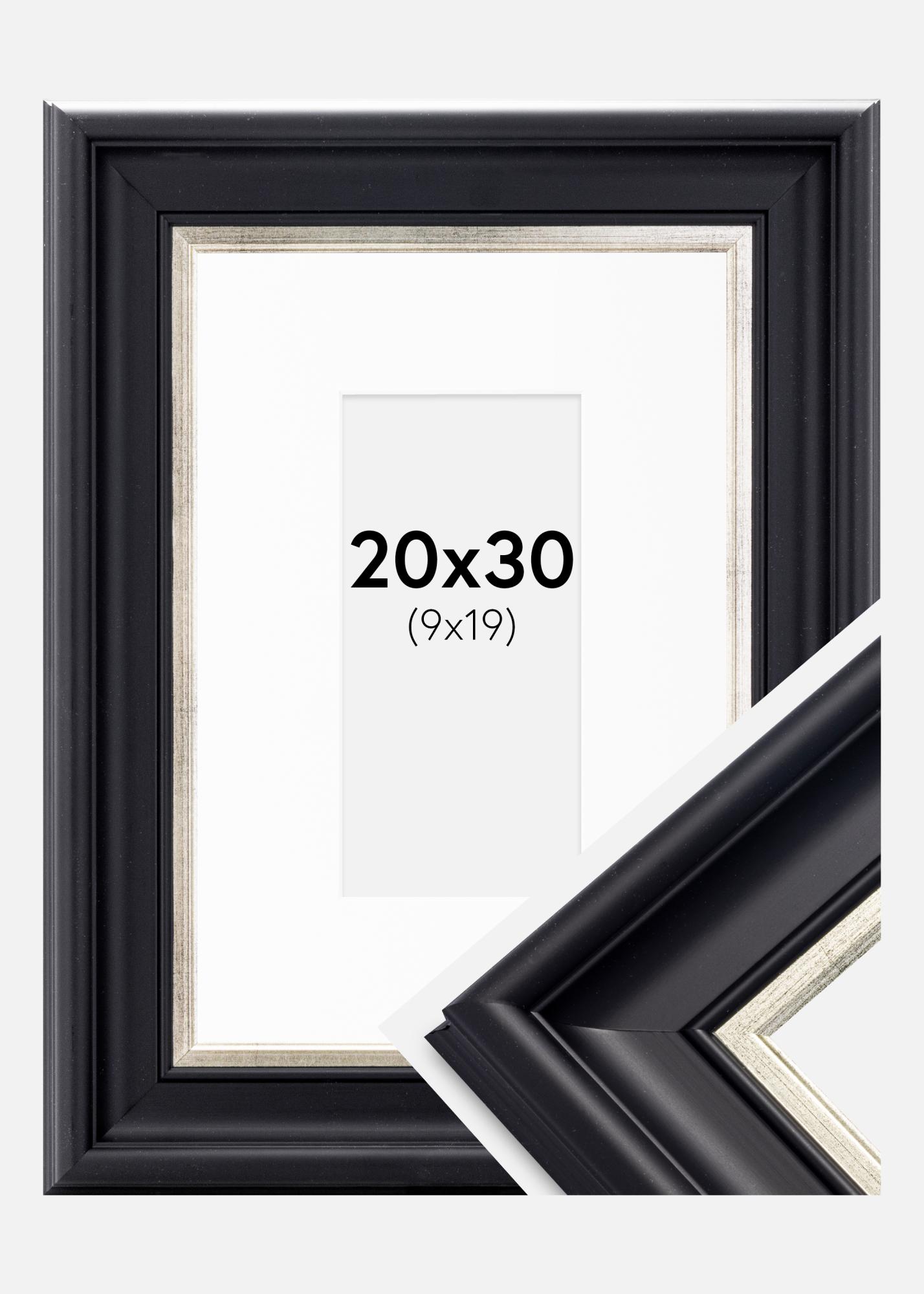 Ramă Dalarna Negru-Argintiu 20x30 cm - Paspartu Alb 10x20 cm