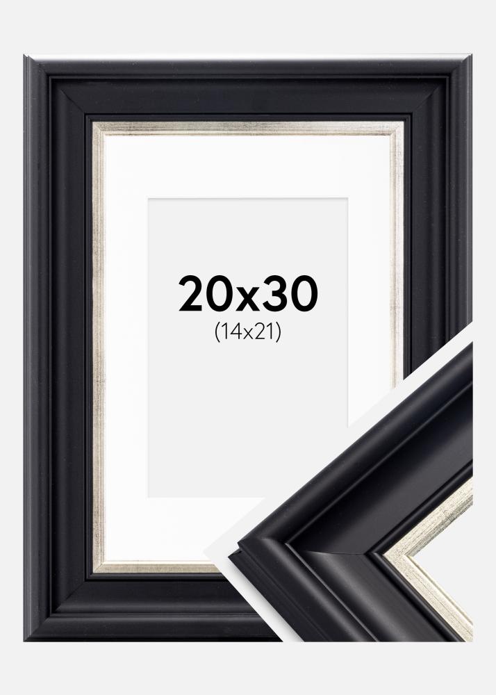 Ramă Dalarna Negru-Argintiu 20x30 cm - Paspartu Alb 15x22 cm