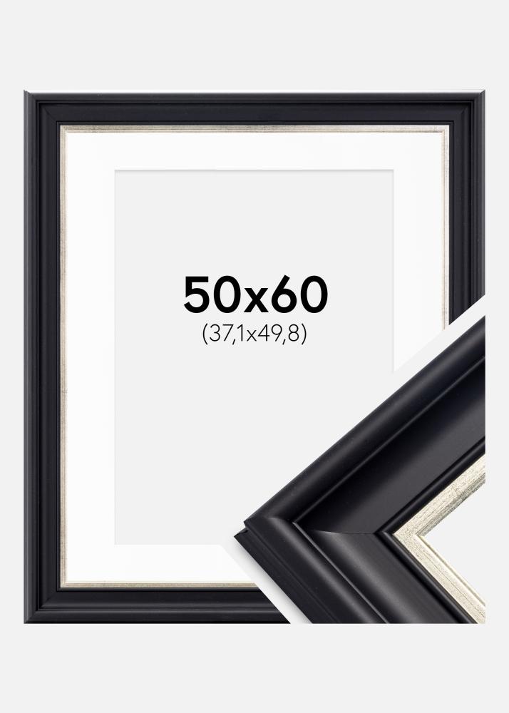 Ramă Dalarna Negru-Argintiu 50x60 cm - Paspartu Alb 15x20 inches