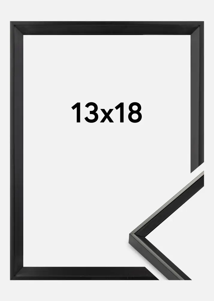 Aceasta este o ramă neagră pentru tablouri, de design modern, cu o listă de ramă simplă și mată, care are doar 10 mm lățime. Lista ramei are, de asemenea, o margine la un unghi de 45° care se înclină spre interior către motiv, oferind imaginii tale o încadrare la modă și elegantă. Încadrarea efectivă este accentuată și mai mult de adâncimea listei de 18 mm, care oferă, de asemenea, ramei o senzație solidă.