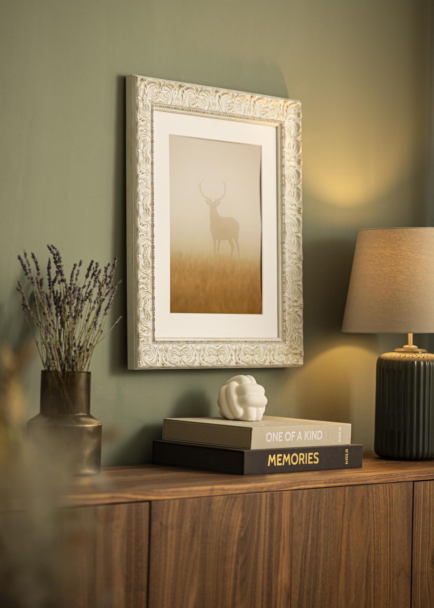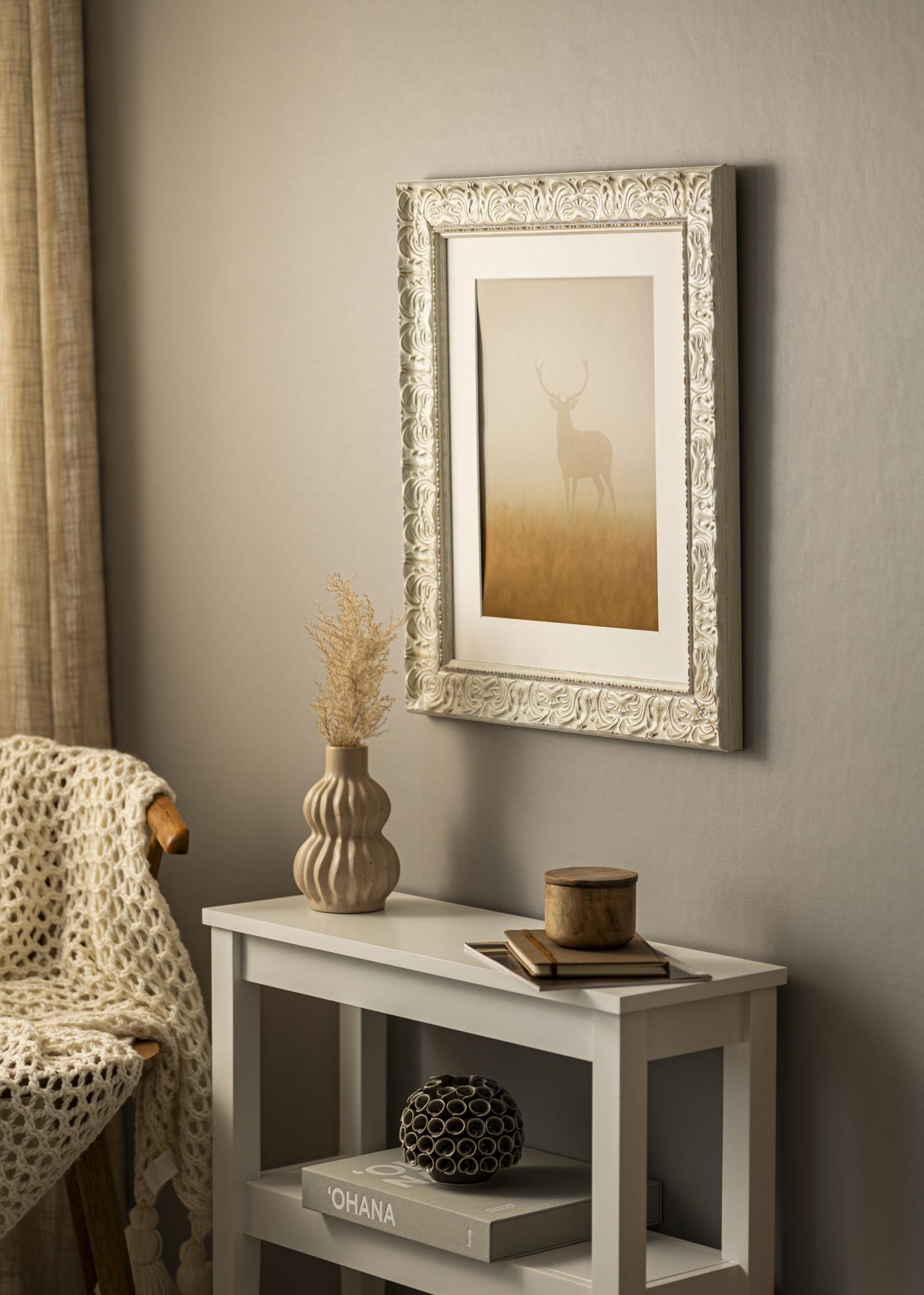 Rama Durham Alb este o ramă elegantă și clasică care oferă imaginilor tale o încadratură atemporală. Cu culoarea sa alb antic și reliefurile decorative, creează o atmosferă sofisticată în orice cameră. Finisajul discret uzat îi conferă ramei foto un caracter unic și accentuează expresia sa clasică, ceea ce o face o alegere perfectă atât pentru interioarele moderne, cât și pentru cele tradiționale.