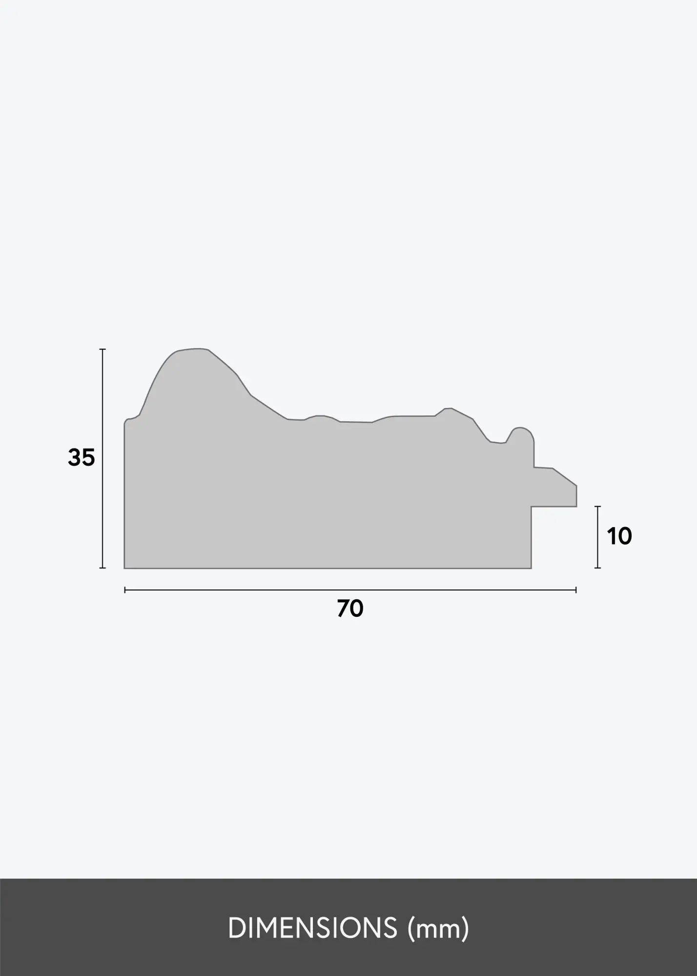 Această ramă are o baghetă impresionantă de 70 mm lățime care oferă o încadratură puternică, în timp ce adâncimea de 35 mm conferă un sentiment stabil și robust. Fabricată din brad, oferă atât durabilitate, cât și ușurință, ceea ce o face ușor de manevrat și agățat pe perete.