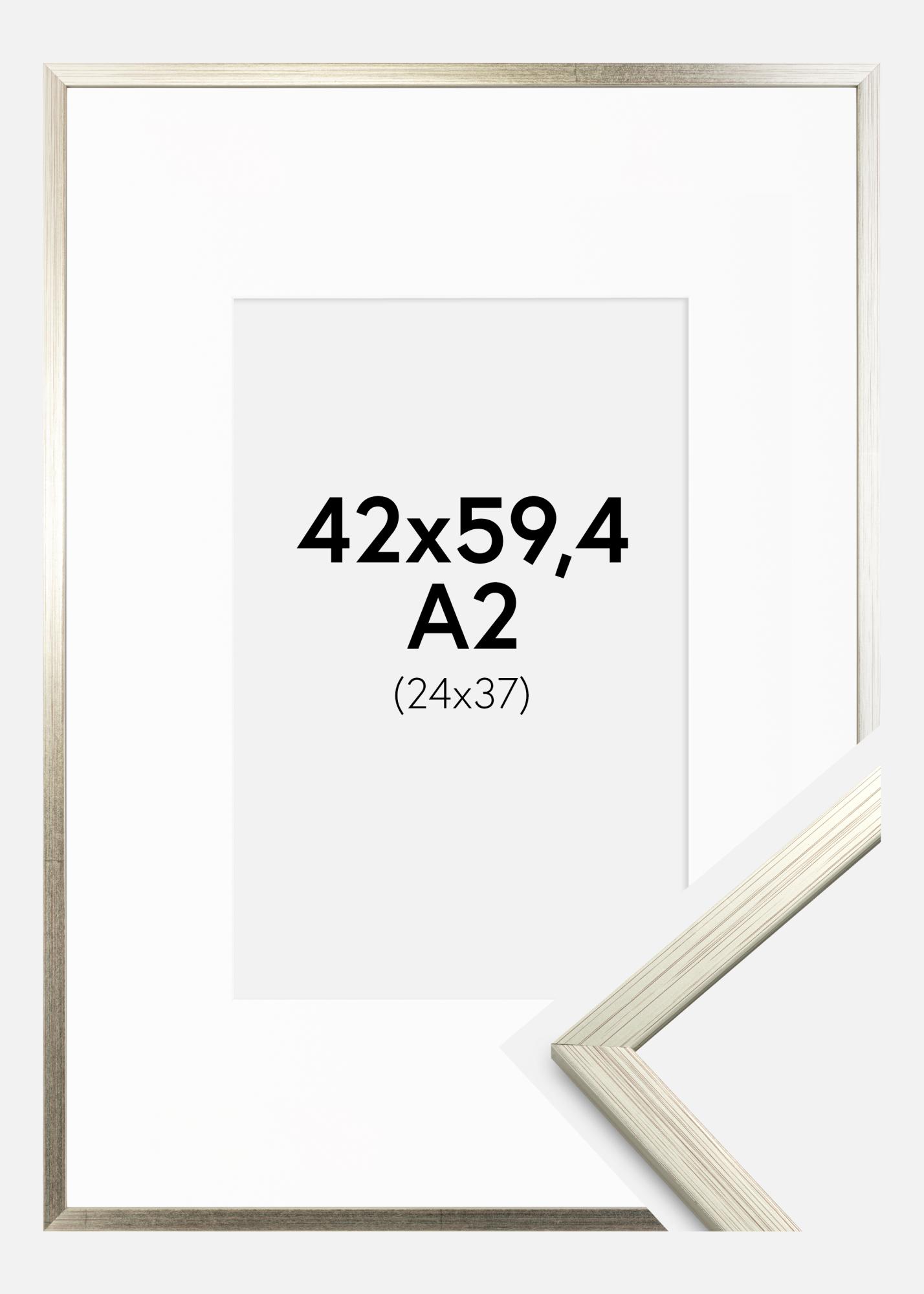 Rama este fabricată cu un finisaj argintiu lucios care oferă un aspect modern și elegant. Lățimea sa îngustă de 13 mm adaugă o încadrere subtilă fără a distrage atenția de la imagine, în timp ce adâncimea de 11,5 mm creează un efect tridimensional plăcut. Passepartout-ul alb completează culoarea argintie a ramei și servește ca o pauză vizuală, ajutând la evidențierea imaginii și protejând-o să nu atingă sticla.