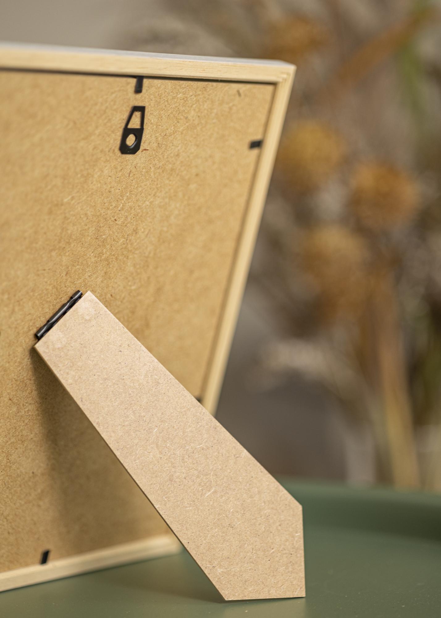Spatele, care este fabricat din MDF, este ținut în loc cu ajutorul unor mici știfturi metalice pe care le poți îndoi cu ușurință când vrei să montezi imaginea. Spatele este prevăzut cu inele de agățare, astfel încât să poți alege între a agăța rama vertical sau orizontal.
