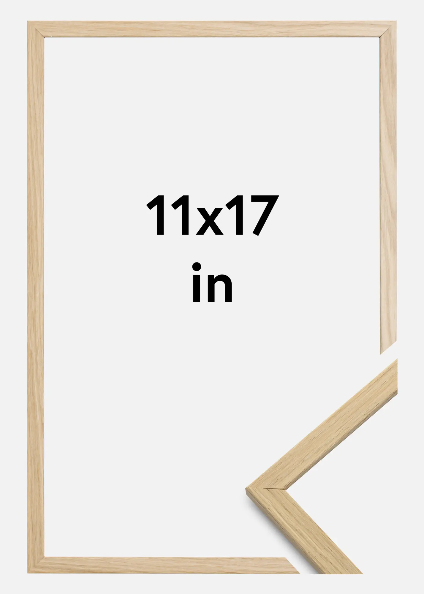 Edsbyn stejar este o ramă de calitate fabricată în Suedia, cu sticlă adevărată. Lista ramei este realizată din lemn de pin, cu furnir de stejar netratat deasupra. Suprafața de furnir de stejar, împreună cu profilul său unghiular, oferă acestei rame de tablou un aspect foarte modern, care se potrivește în orice casă. Lista ramei măsoară 13 mm lățime și 11,5 mm adâncime. Cu suporturile de perete incluse ale ramei, o poți agăța pe perete atât în poziție orizontală, cât și verticală. Edsbyn stejar este disponibilă în mai multe dimensiuni diferite, iar aceasta măsoară 11x17 inci (27,94x43,18 cm).