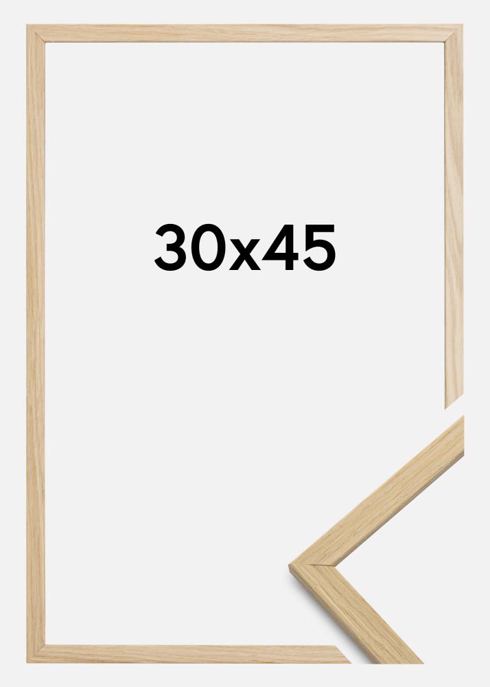 Câteodată primim întrebarea de ce rama este făcută din furnir de stejar și nu din stejar solid autentic dacă trebuie să fie o ramă de calitate. Motivul pentru aceasta este că este dificil să obții o suprafață controlată atunci când este vorba de stejar autentic, fără să apară de multe ori variații de culoare pe diferite părți ale lemnului, ceea ce în anumite contexte poate fi potrivit. Dar pe o ramă, există riscul să pară doar că anumite părți ale ramei sunt decolorate.