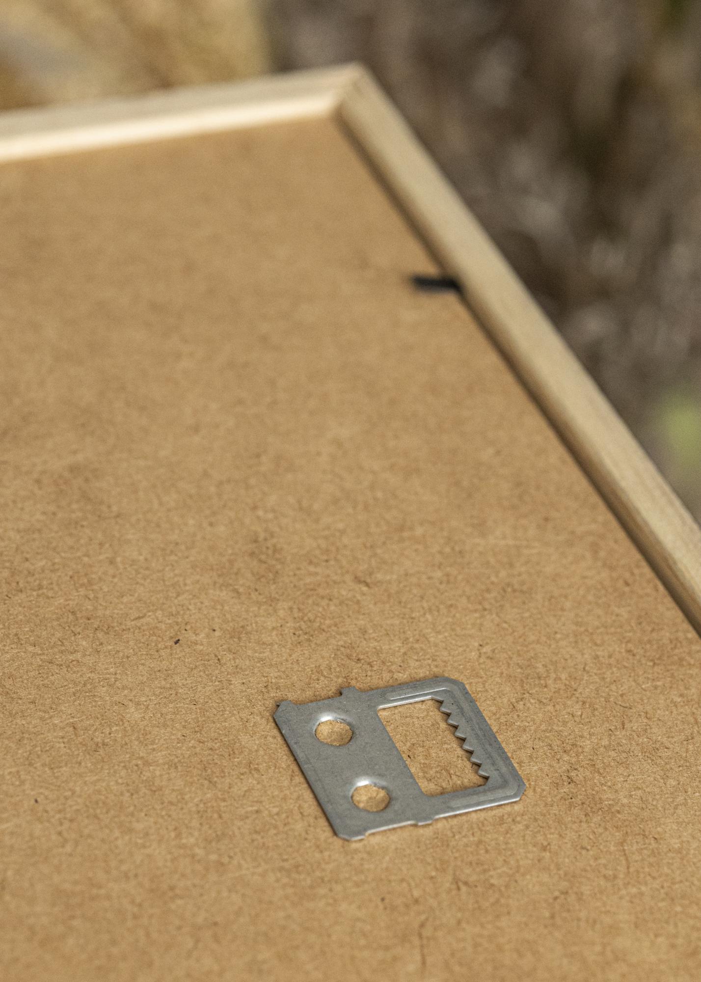Rama are un spate din MDF, care este ținut în loc de mici cuie. Dacă îndoi cuiele în sus, poți desprinde spatele și plasa subiectele tale.