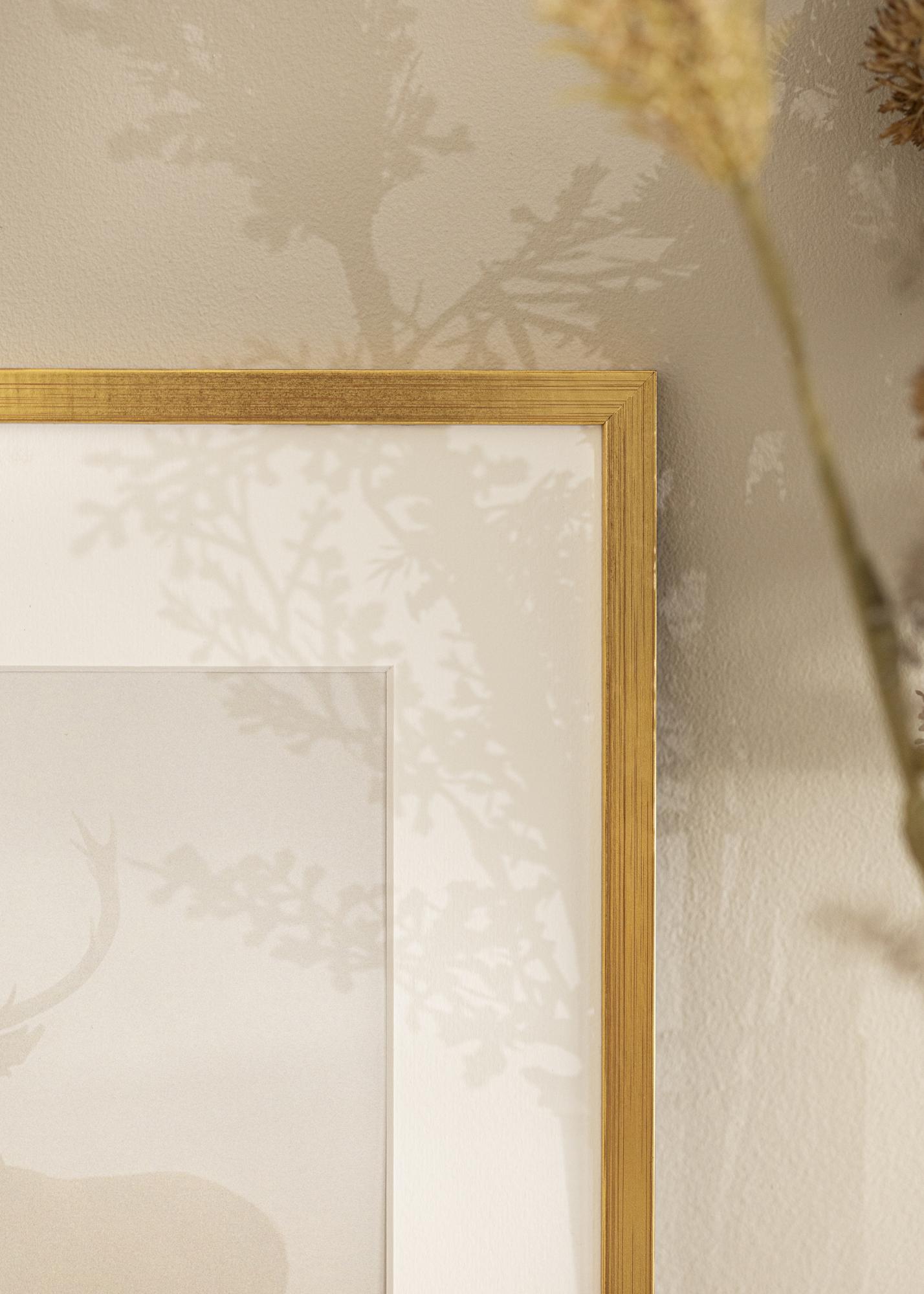 Cu această ramă aurie lucioasă, subiectele tale primesc o încadrare atât la modă, cât și elegantă. Este la fel de potrivită singură pe perete, precum și alături de alte rame într-un perete cu tablouri. Dacă potrivești rama aurie cu variante de rame în alte culori, obții un rezultat și mai interesant.