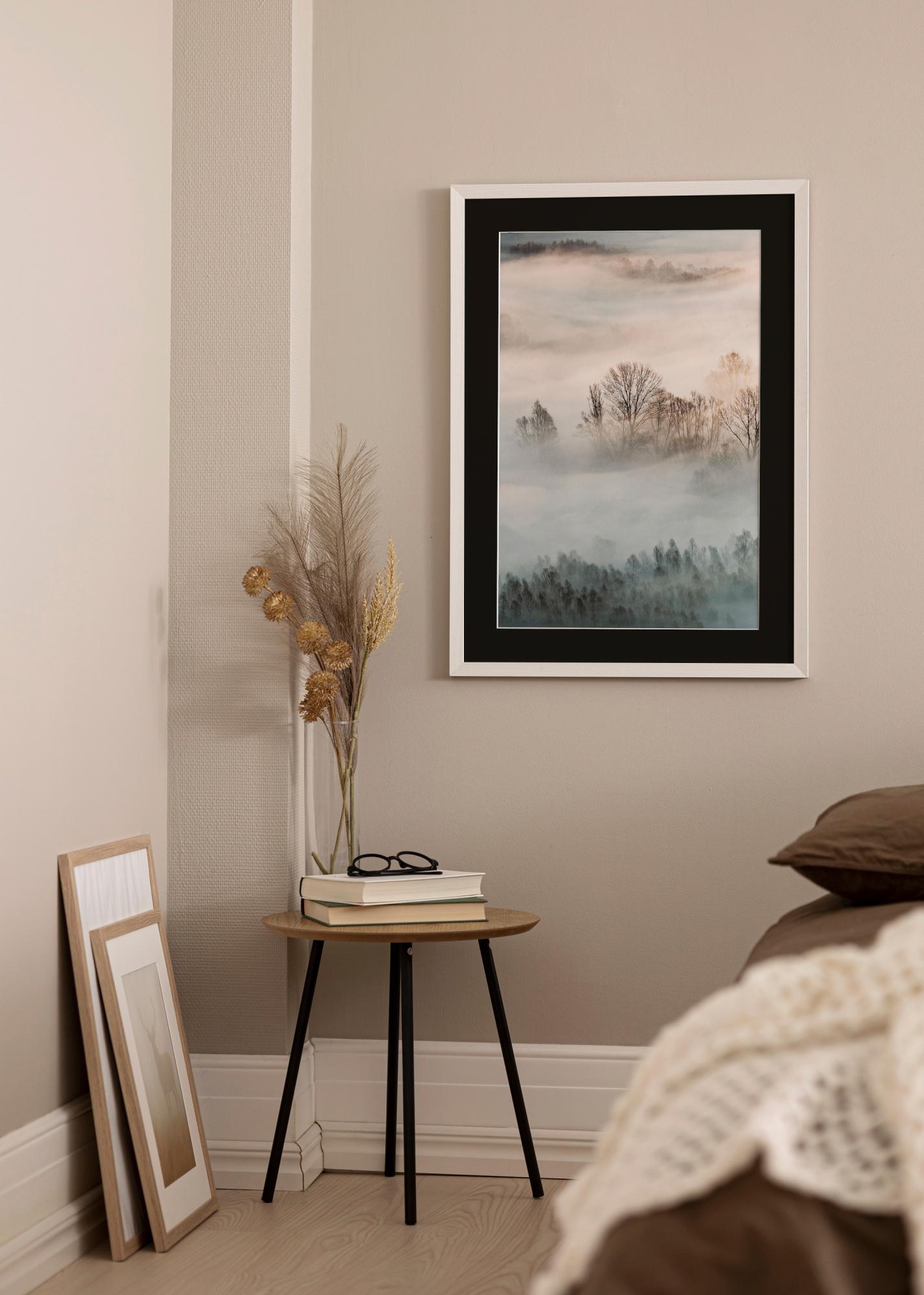 Passepartout-ul negru creează un contrast dramatic și amplifică expresia imaginii tale. Cu ajutorul cuierelor metalice incluse, poți agăța cu ușurință rama atât orizontal, cât și vertical, oferindu-ți flexibilitate în poziționarea pe perete.