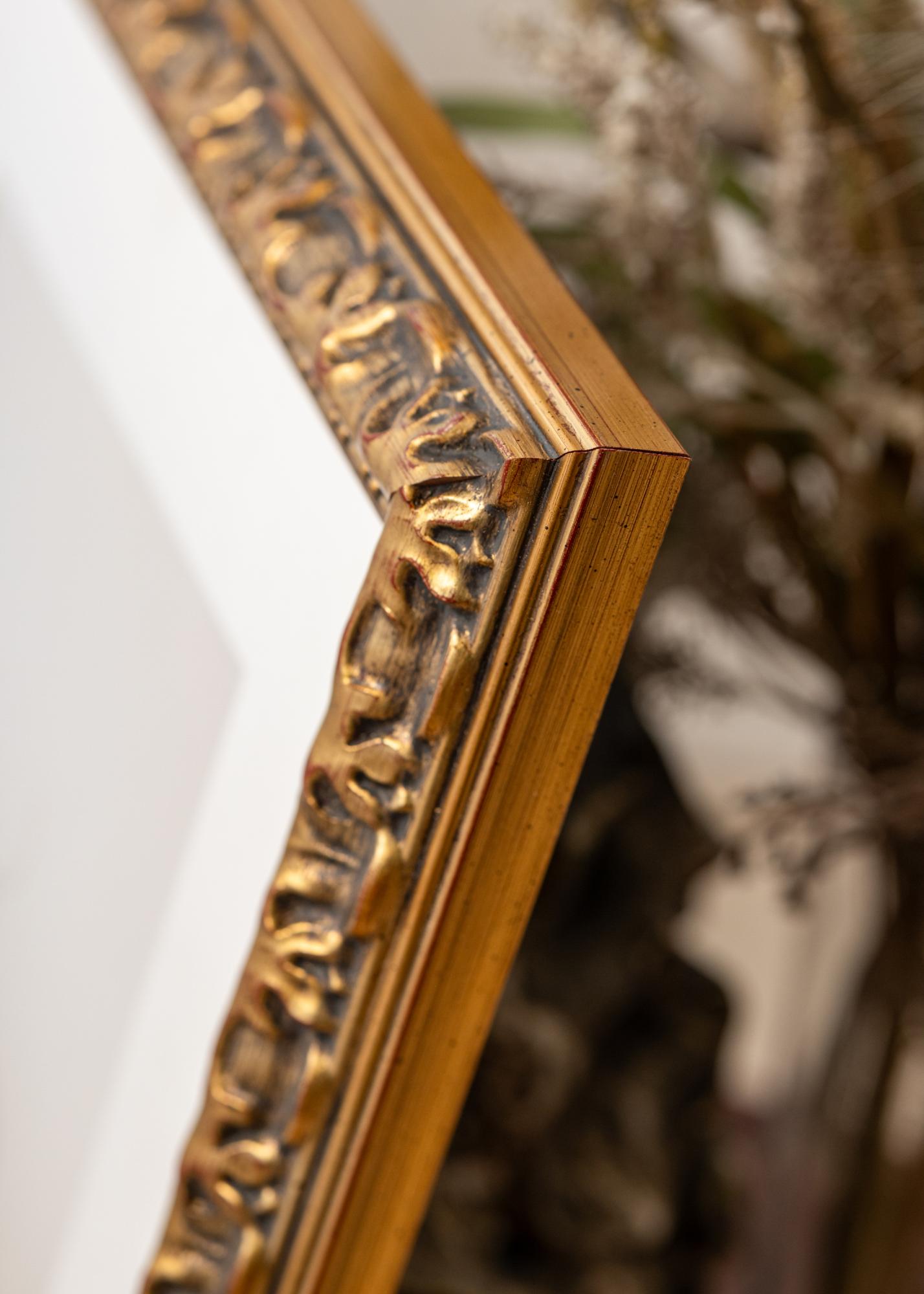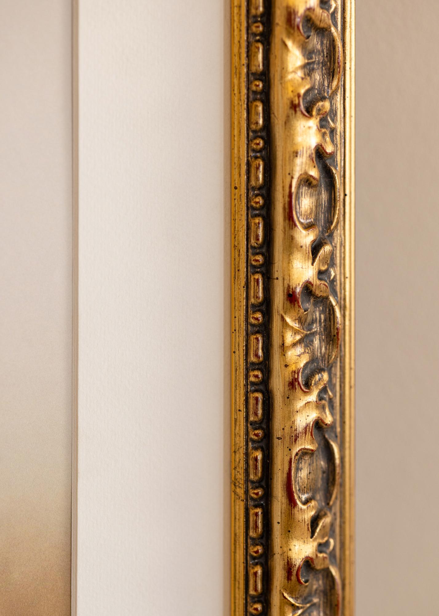 Rama Freyja Auriu este o ramă foto elegantă și stilată care oferă imaginilor tale o încadratură luxoasă. Cu suprafața sa aurie și ornamentele sale intricate, devine un element atrăgător în orice cameră. Finisajul antic, cu detalii întunecate și accente subtile de roșu, accentuează caracterul rustic al ramei și îi conferă un farmec atemporal.