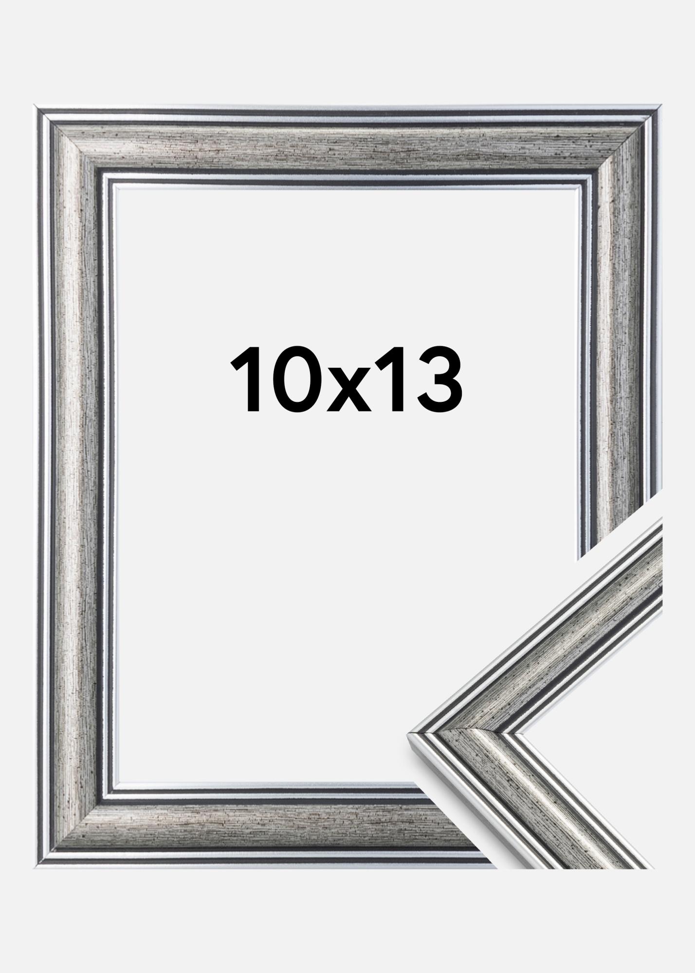Frigg este o ramă argintie cu linii negre și inserții cu pete negre. Se potrivește excelent când cauți o ramă argintie tradițională, lată, care se potrivește cu multe tipuri de imagini și medii.