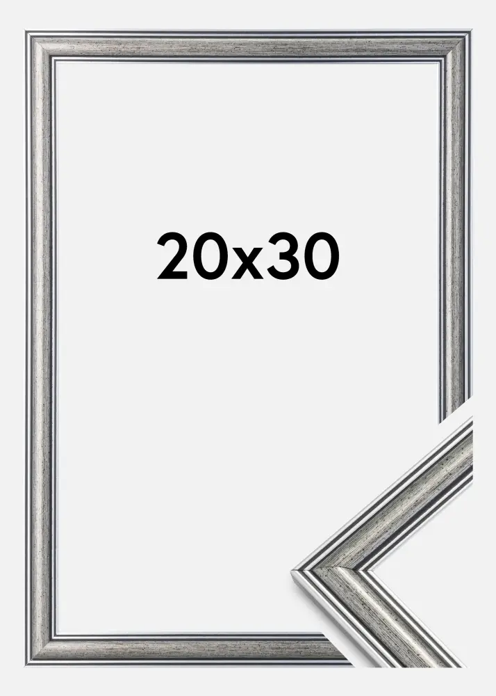 Frigg este o ramă argintie cu linii negre și detalii negre. Potrivită excelent atunci când cauți o ramă argintie tradițională, largă, care se potrivește multor tipuri de imagini și medii.