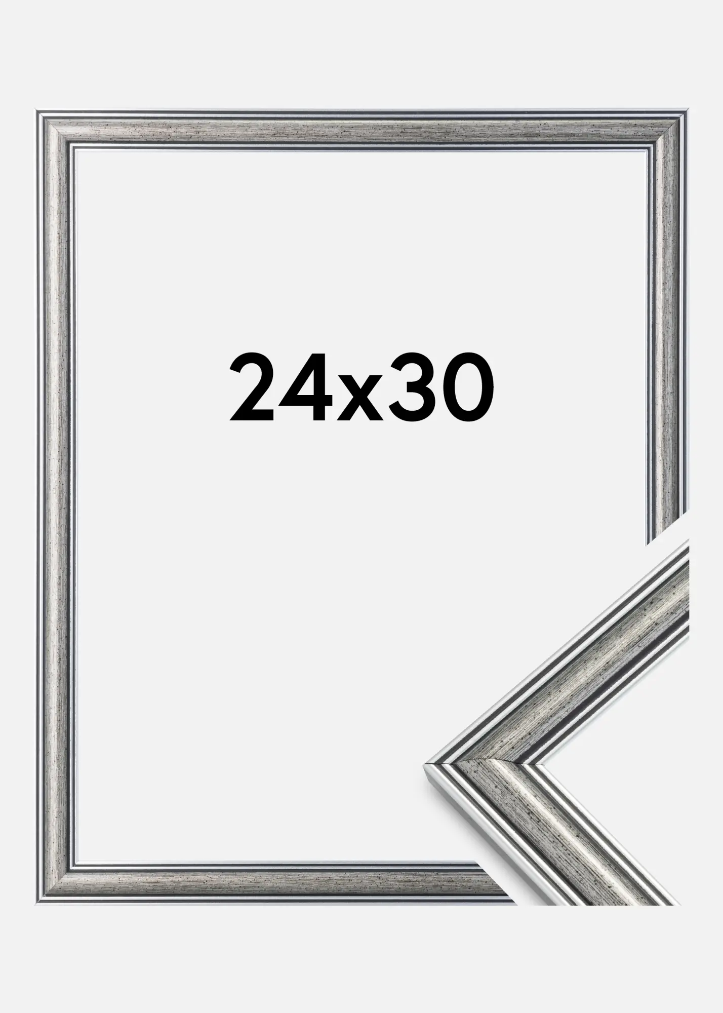 Frigg este o ramă argintie cu linii negre și elemente cu pete negre. Se potrivește excelent când cauți o ramă argintie tradițională și largă care se potrivește cu multe tipuri de imagini și medii.
