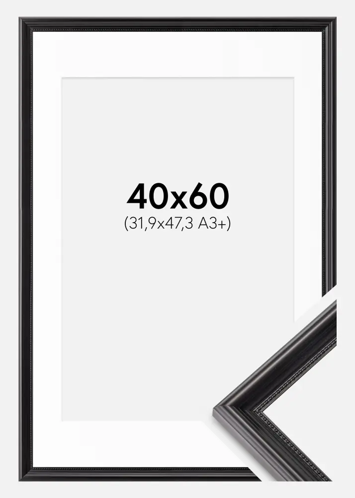 Ramă Gala Negru 40x60 cm - Paspartu Alb 32,9x48,3 cm (A3+)