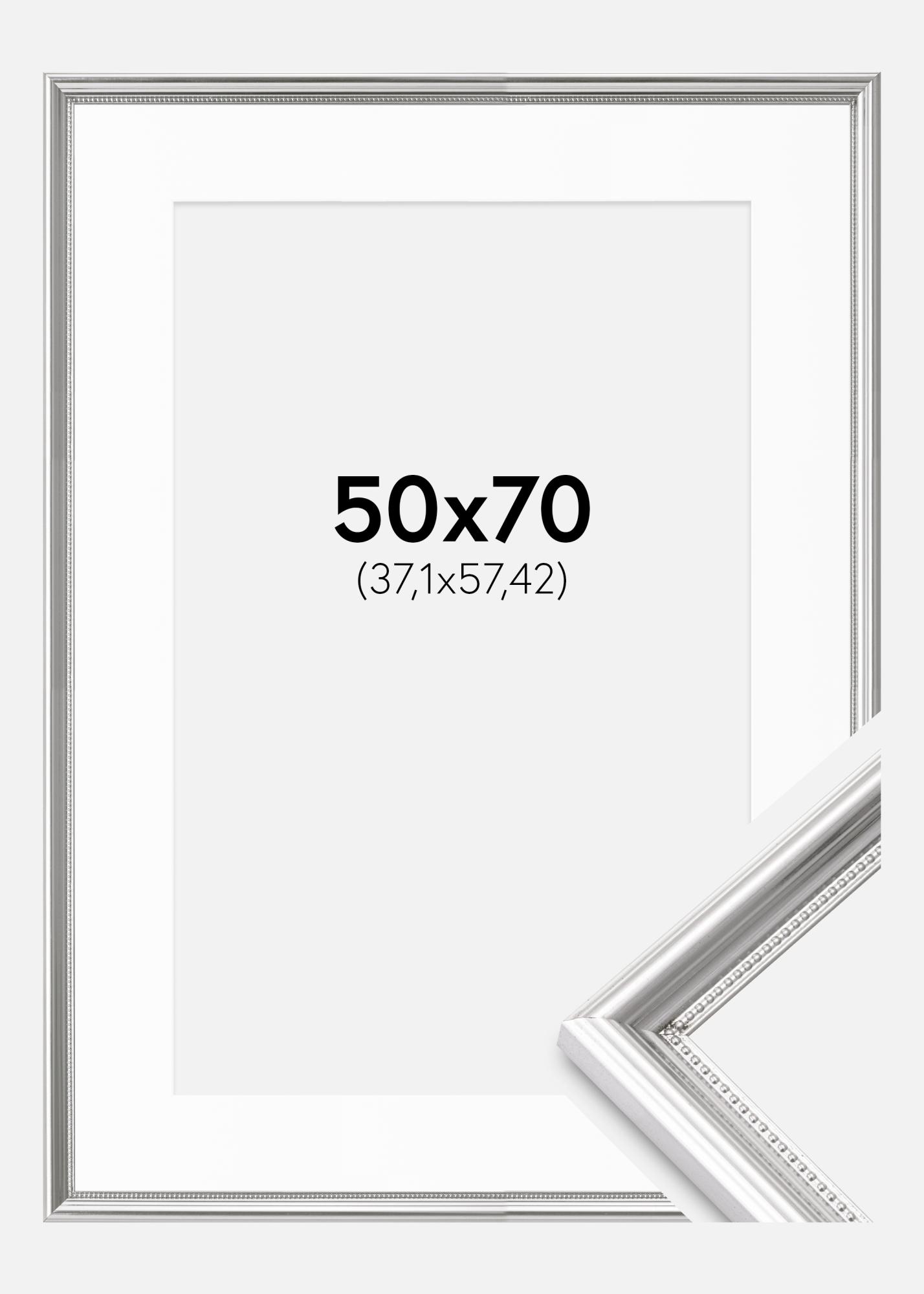 Ramă Gala Argint 50x70 cm - Paspartuuri Alb 15x23 inches