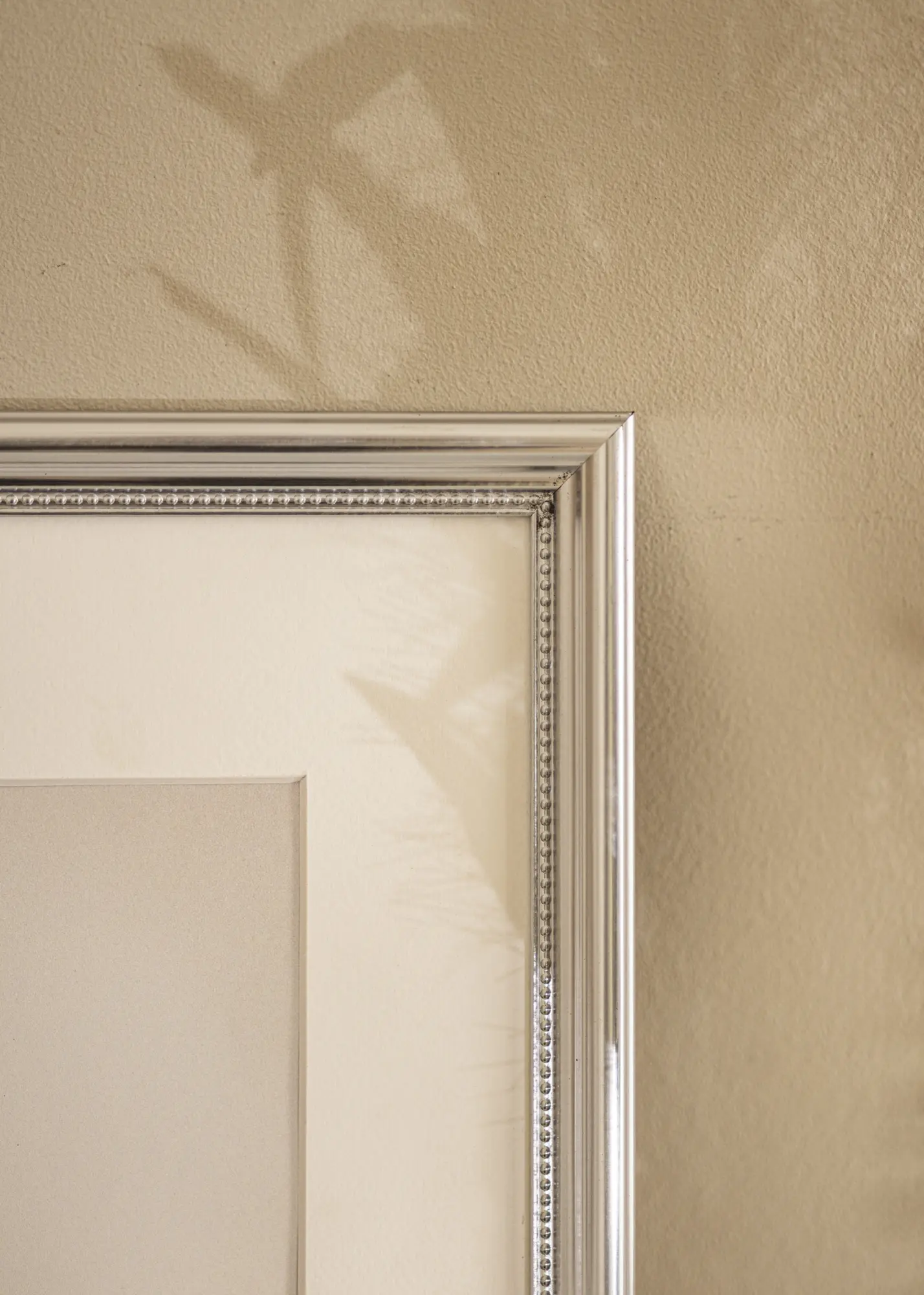 Această ramă argintie nu este doar o încadrare stilată pentru imaginile dvs., ci și practică. Datorită cârligelor metalice premontate pe spate, rama poate fi ușor agățată atât pe orizontală, cât și pe verticală, oferindu-vă flexibilitate atunci când creați propriul perete cu tablouri. Dimensiunile ramei sunt de 50 x 70 cm, perfectă pentru a evidenția atât fotografii mari cât și opere de artă.