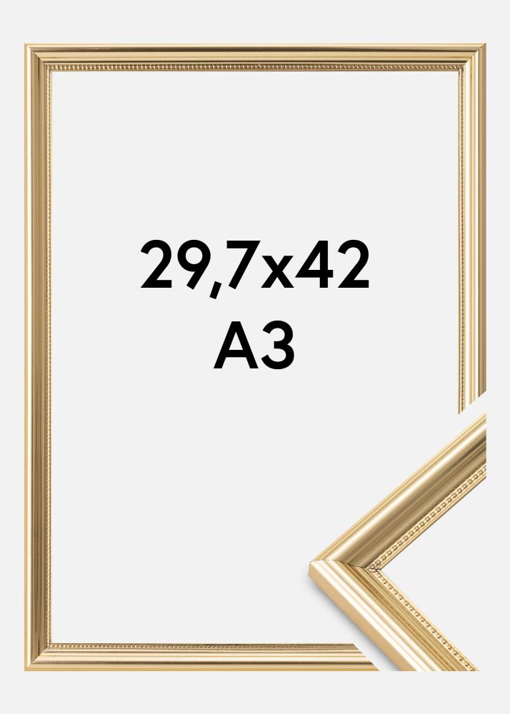 Adu-ți pereților o notă de eleganță cu această ramă foto de 29,7x42 cm (A3) de culoare aurie. Cu rama sa profilată în stil retro, aduce un farmec clasic în casa ta. Lățimea listei ramei de 20 mm și adâncimea de 17 mm oferă o margine distinctă și rafinată fotografiilor sau operelor tale de artă preferate.