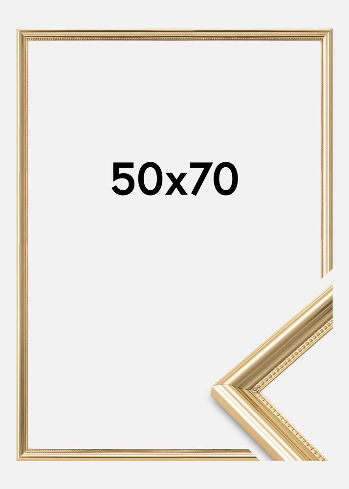 Oferă pereților tăi o notă de eleganță cu această ramă aurie de 50x70 cm. Lista profilată a ramei, de 20 mm lățime, de culoare aurie, adaugă o senzație de lux în orice cameră. Suprafața lucioasă a ramei reflectă frumos lumina și adaugă o atmosferă sofisticată.