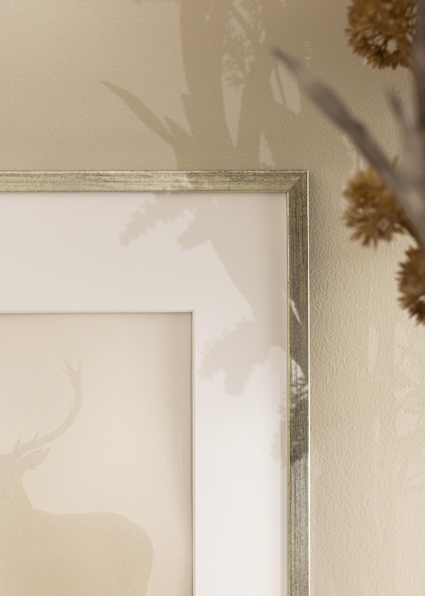 Ramă elegantă din lemn cu un profil drept care are un sentiment minunat vintage și o suprafață argintie uzată cu dungi negre. Cu profilul său argintiu moale, Galant Silver este o ramă care se potrivește aproape tuturor tipurilor de imagini.