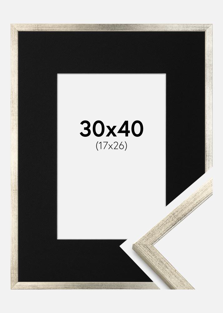Ramă Galant Argintiu 30x40 cm - Paspartu Negru 18x27 cm