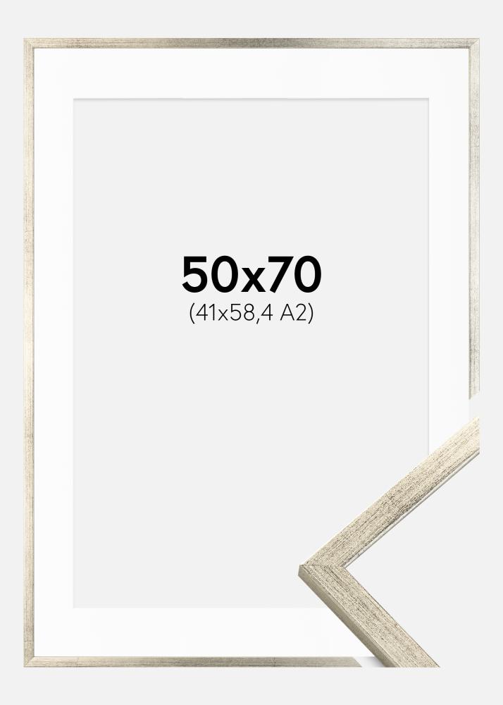 Ramă Galant Argintiu 50x70 cm - Paspartu Alb 42x59,4 cm (A2)