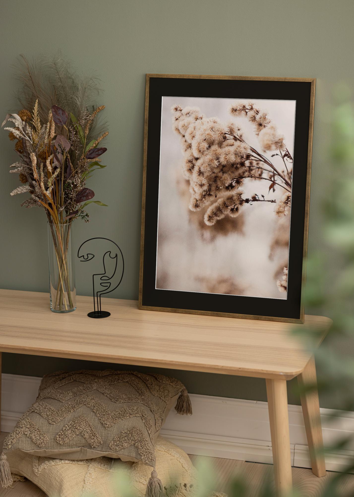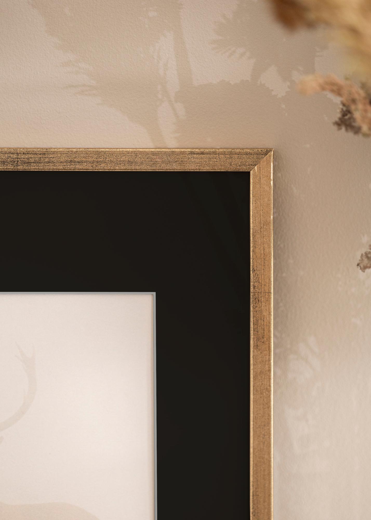 Oferă imaginilor tale atenția pe care o merită cu o ramă elegantă aurie completată de un passepartout negru. Această combinație evidențiază opera de artă și creează o pauză vizuală care intensifică experiența privitorului. Passepartout-ul oferă, de asemenea, un strat protector între imagine și sticla acrilică, ceea ce ajută la păstrarea calității imaginii în timp.