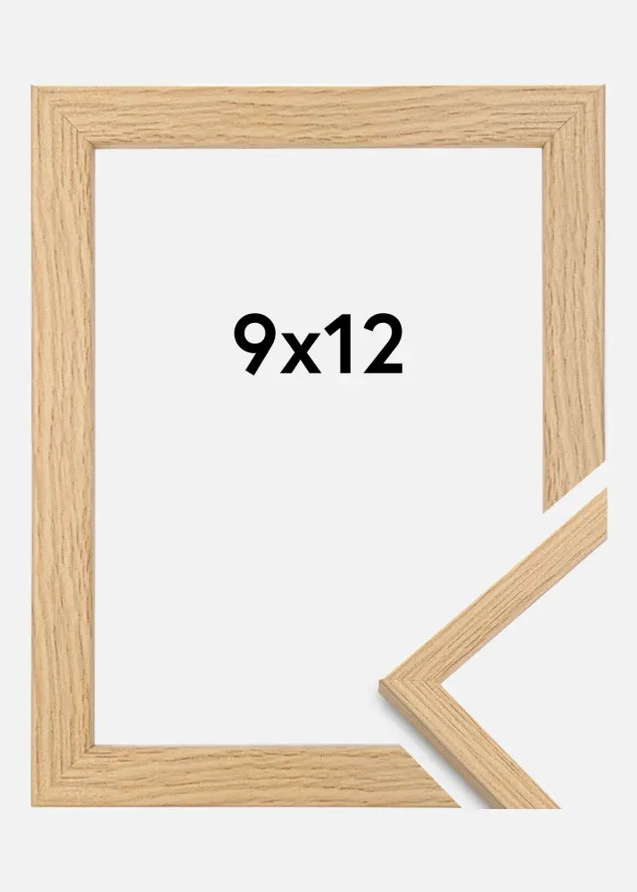 Aceasta este o ramă subțire care se potrivește perfect atunci când vrei să lași toată atenția asupra subiectului! Banda ramei are o adâncime de 13 mm și o lățime de 13 mm, ceea ce înseamnă că rama are un design simplu, dar solid. Rama este fabricată din lemn de pin și are o suprafață de culoarea stejarului. Pe partea din spate se află suporturi de perete pentru agățare atât orizontală, cât și verticală.