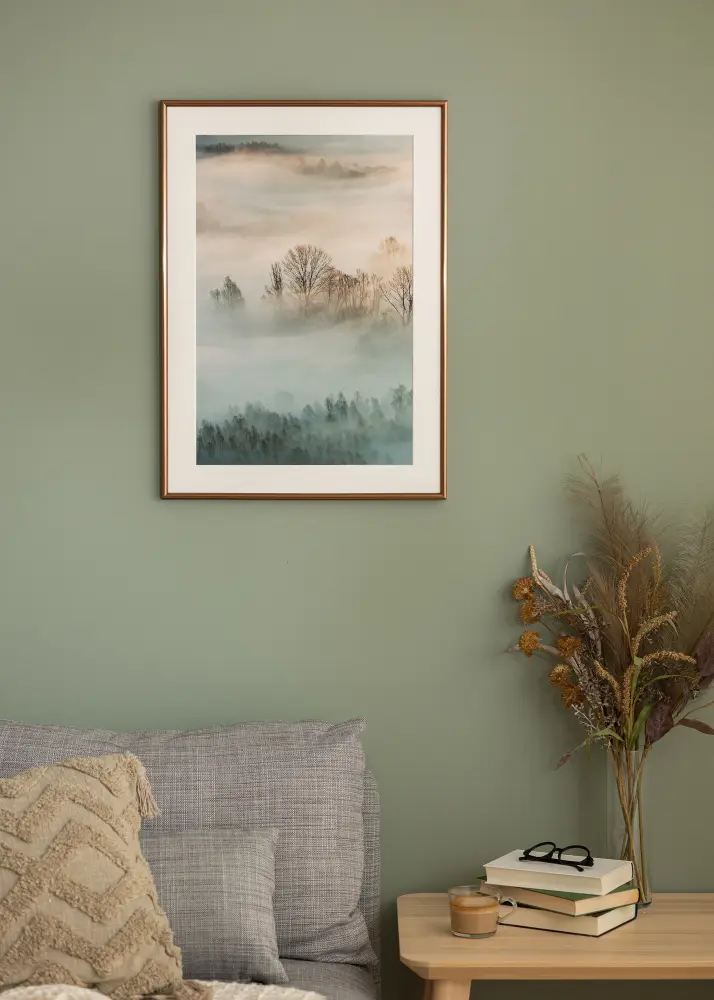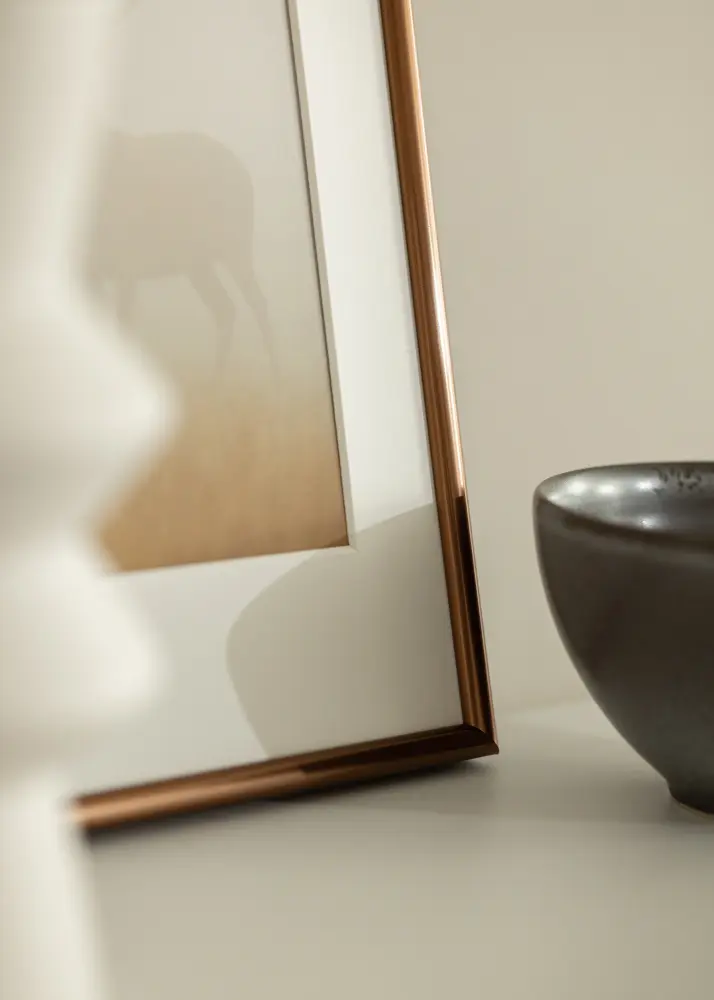 Aceasta este o ramă la modă cu o suprafață lucioasă de culoare cupru. Profilul semi-rotund al ramei este subțire la lățime, dar are o adâncime de 19 mm, ceea ce face ca rama să iasă puțin de pe perete. Creează o impresie puternică care pune în centrul atenției motivul tău. Poți alege liber dacă dorești să folosești rama ta de tablou în poziție verticală sau orizontală.