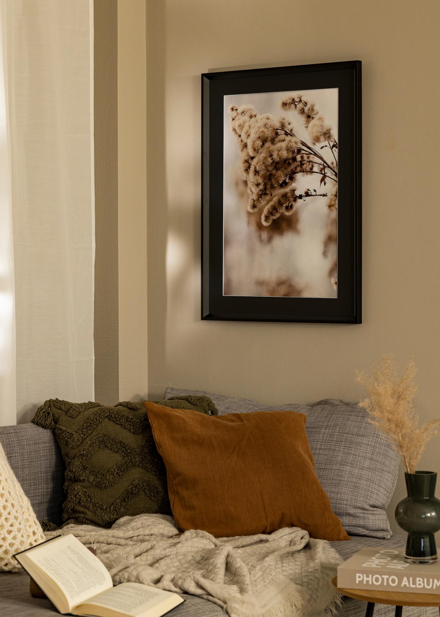 Transformați fotografia sau opera de artă preferată într-o decorare elegantă pentru perete cu cadrul nostru de înaltă calitate, cu passepartout. Culoarea neagră a cadrului și passepartout-ului creează o înrămare armonioasă și sofisticată care pune în valoare motivul într-un mod stilat. Cu o lățime a cadrului de 20 mm și o adâncime de 25 mm, imaginea dumneavoastră capătă un aspect distinct și profesional.