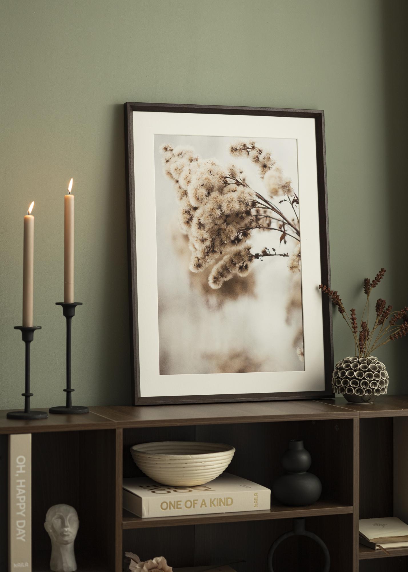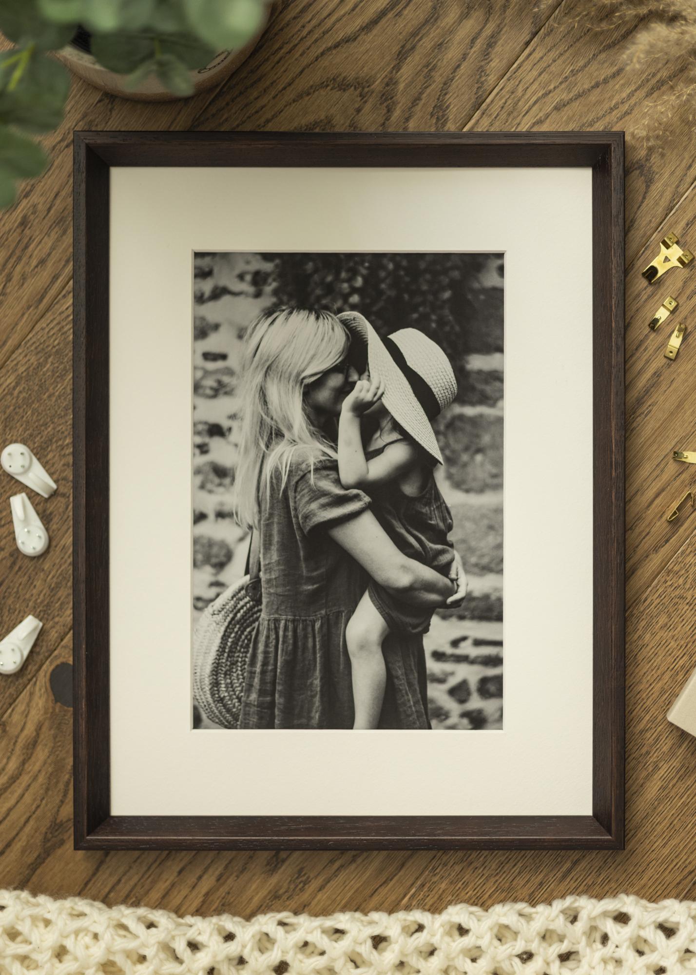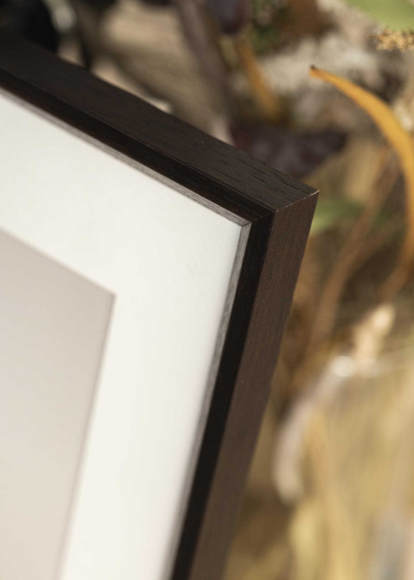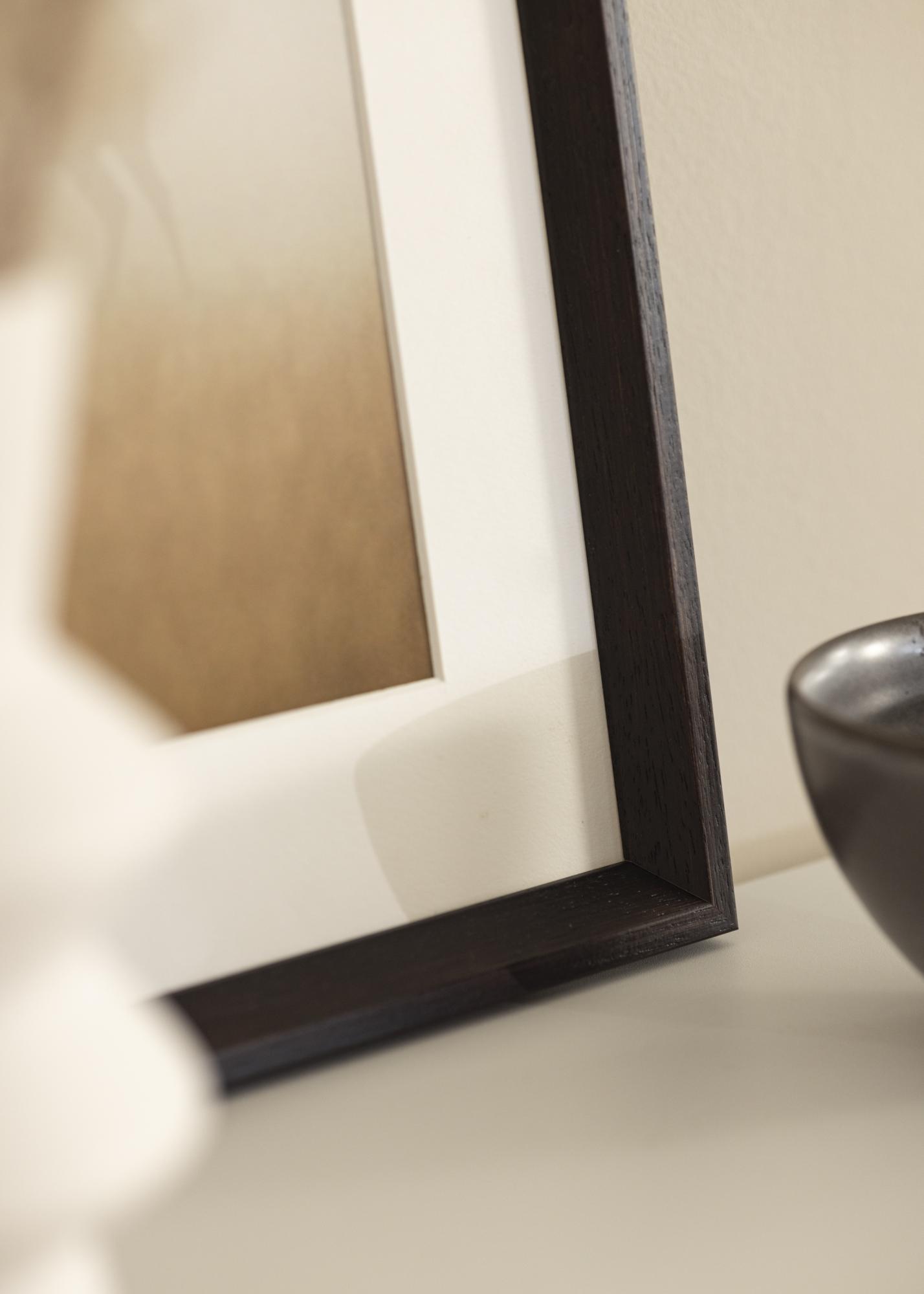 Globe Acril Sticlă Espresso oferă imaginilor tale un cadru foarte sofisticat. Rama este fabricată în Suedia din lemn solid de ayous, vopsit într-o nuanță plăcută de maro espresso cu un finisaj elegant lucios. Designul special, cu o listă de lemn de 20 mm lățime cu un unghi de 45° față de motiv, dă cadrului o expresie foarte stilată. Culoarea, împreună cu designul sofisticat, fac ca rama să fie potrivită atât singură cât și combinată cu alte rame în diferite stiluri.