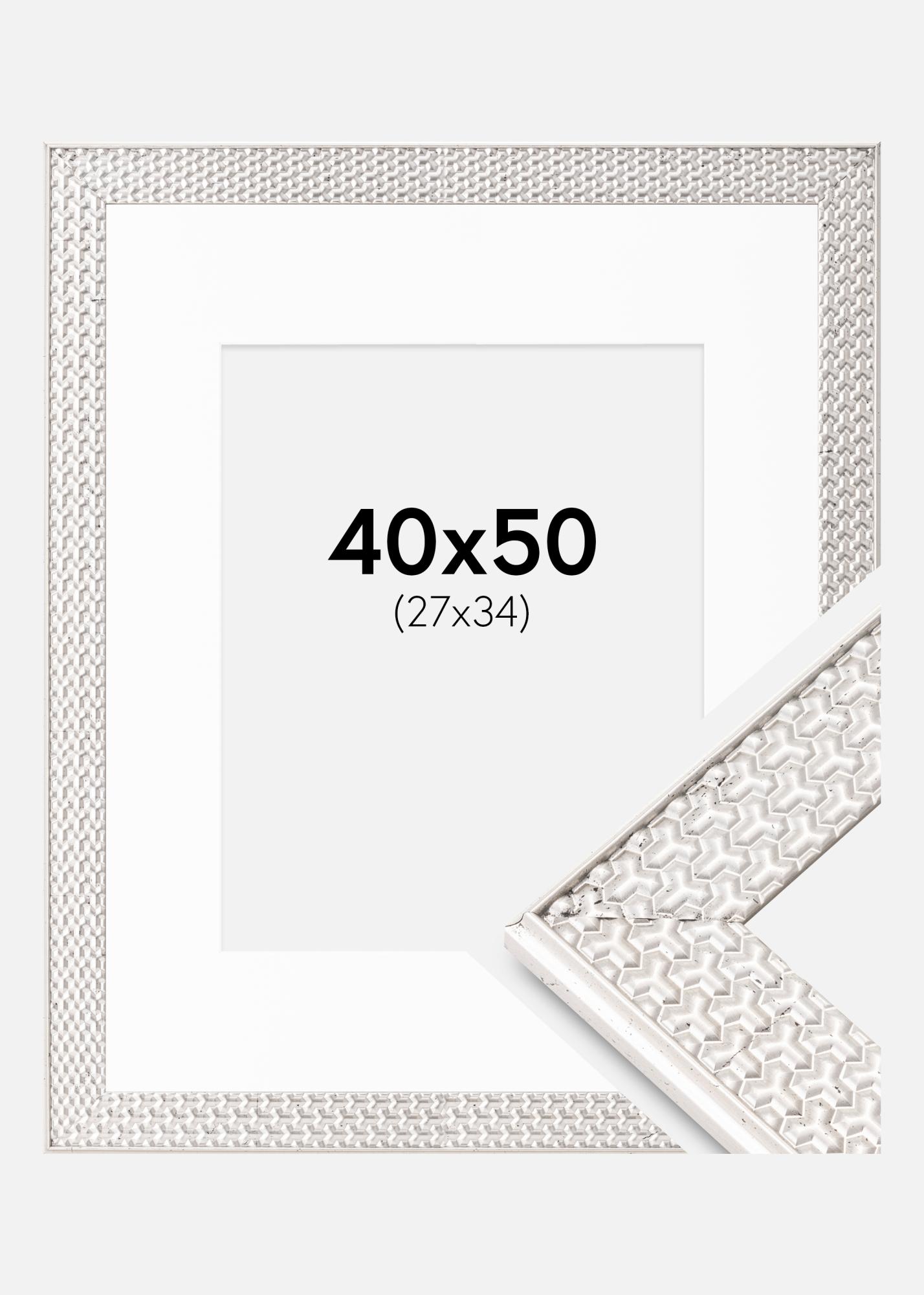 Ramă Grace Argintiu 40x50 cm - Paspartu Alb 28x35 cm