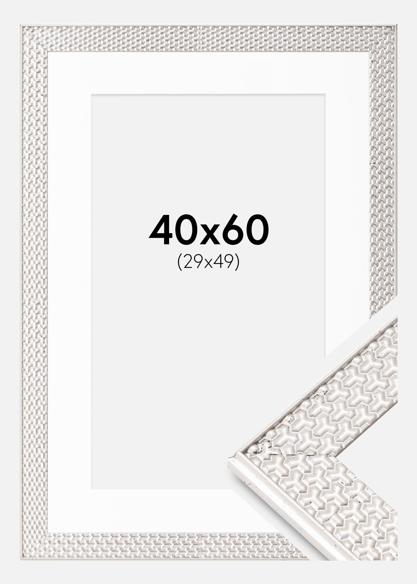 Transformă-ți fotografia preferată sau opera de artă într-o decorațiune elegantă pentru perete cu această ramă stilată de argint cu passepartout alb. Cu liniile sale curate și combinația clasică de culori, rama este un complement perfect pentru toate tipurile de stiluri de interior. Dimensiunile exterioare ale ramei sunt 45,8x65,8 cm și este proiectată pentru a evidenția o imagine de dimensiunea 30x50 cm.