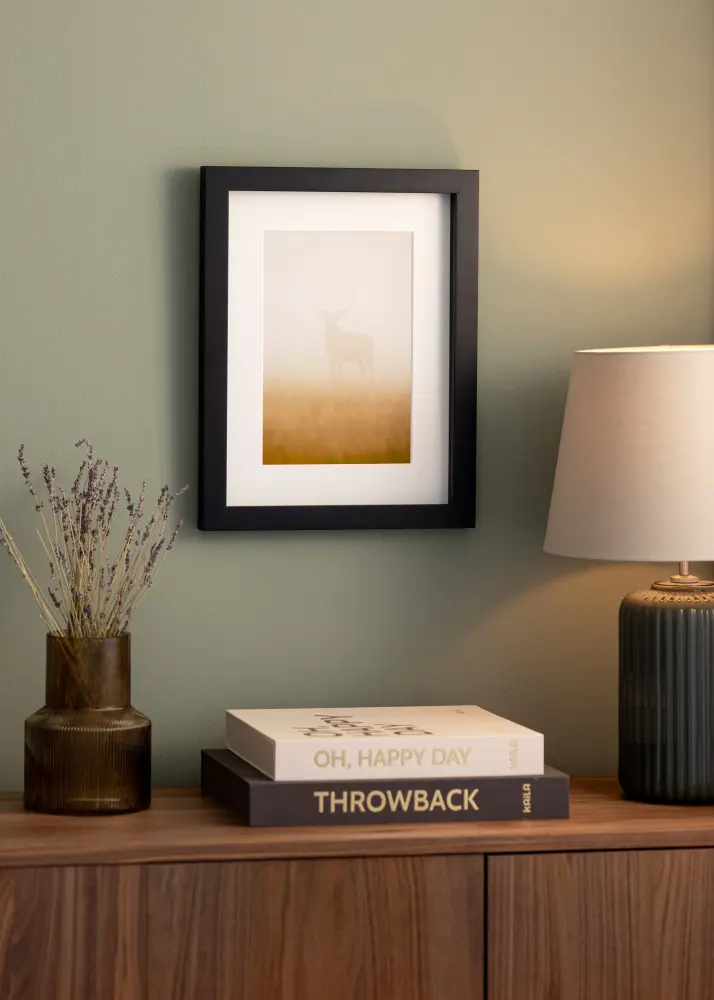 Ramă Hathor Negru este o ramă de tablou realizată la comandă în atelierul nostru propriu, oferindu-ți posibilitatea de a obține o ramă foto care să se potrivească perfect pentru lucrarea ta de artă sau fotografie. Cu culoarea sa neagră și designul elegant, devine un complement stilat pentru toate tipurile de interioare. Suprafața mată a ramei conferă o senzație modernă care evidențiază motivul într-un mod rafinat.