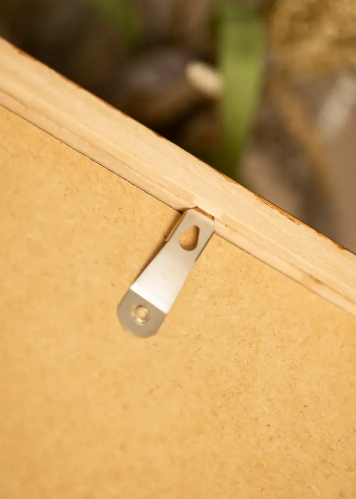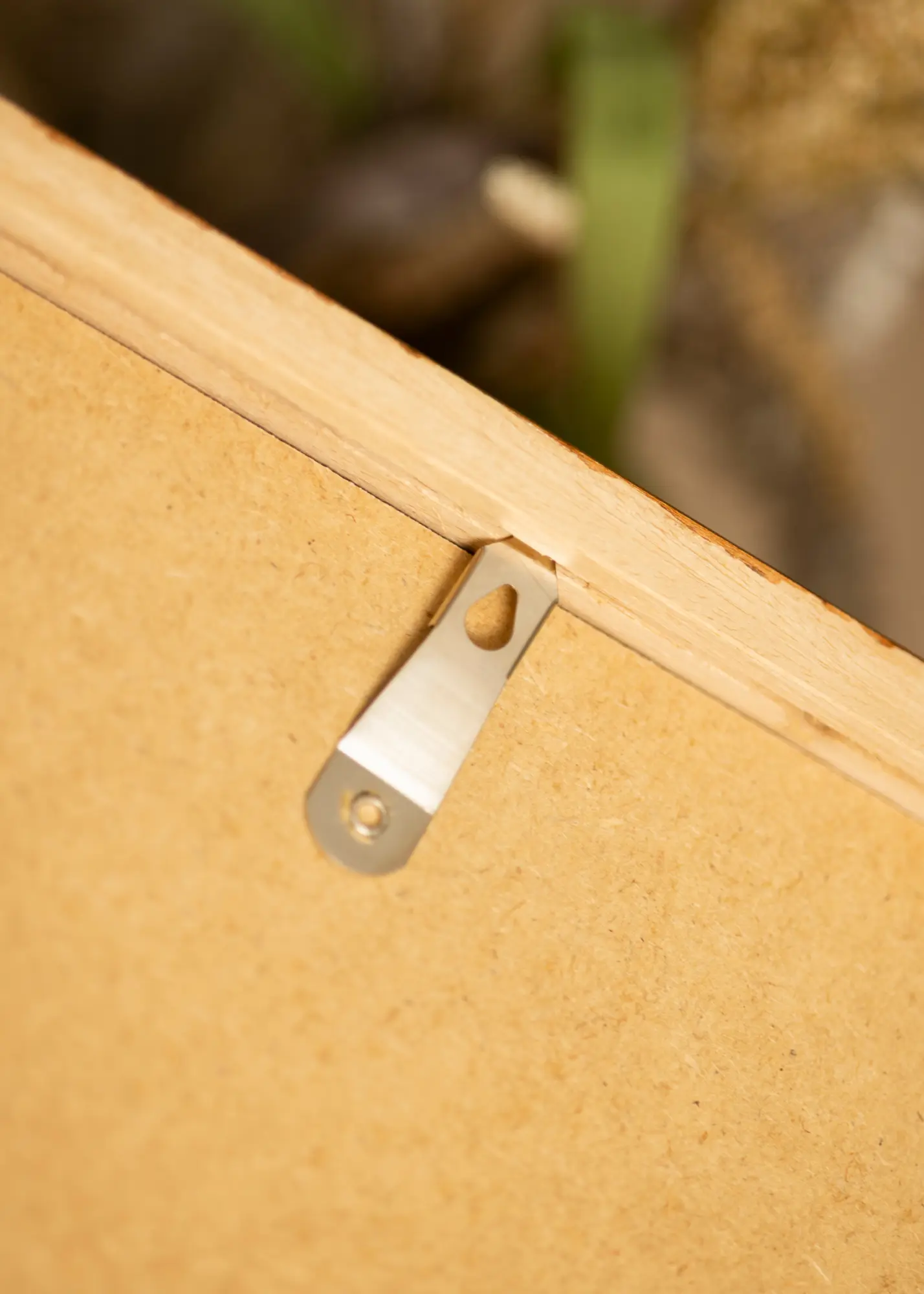 Cadrul foto este fabricat din lemn de ayos robust și are o suprafață vopsită care oferă o impresie caldă și primitoare. Este echipat cu agățătoare metalice practice pe spate, ceea ce permite agățarea cadrului atât orizontal, cât și vertical, în funcție de necesitățile și orientarea imaginii tale.