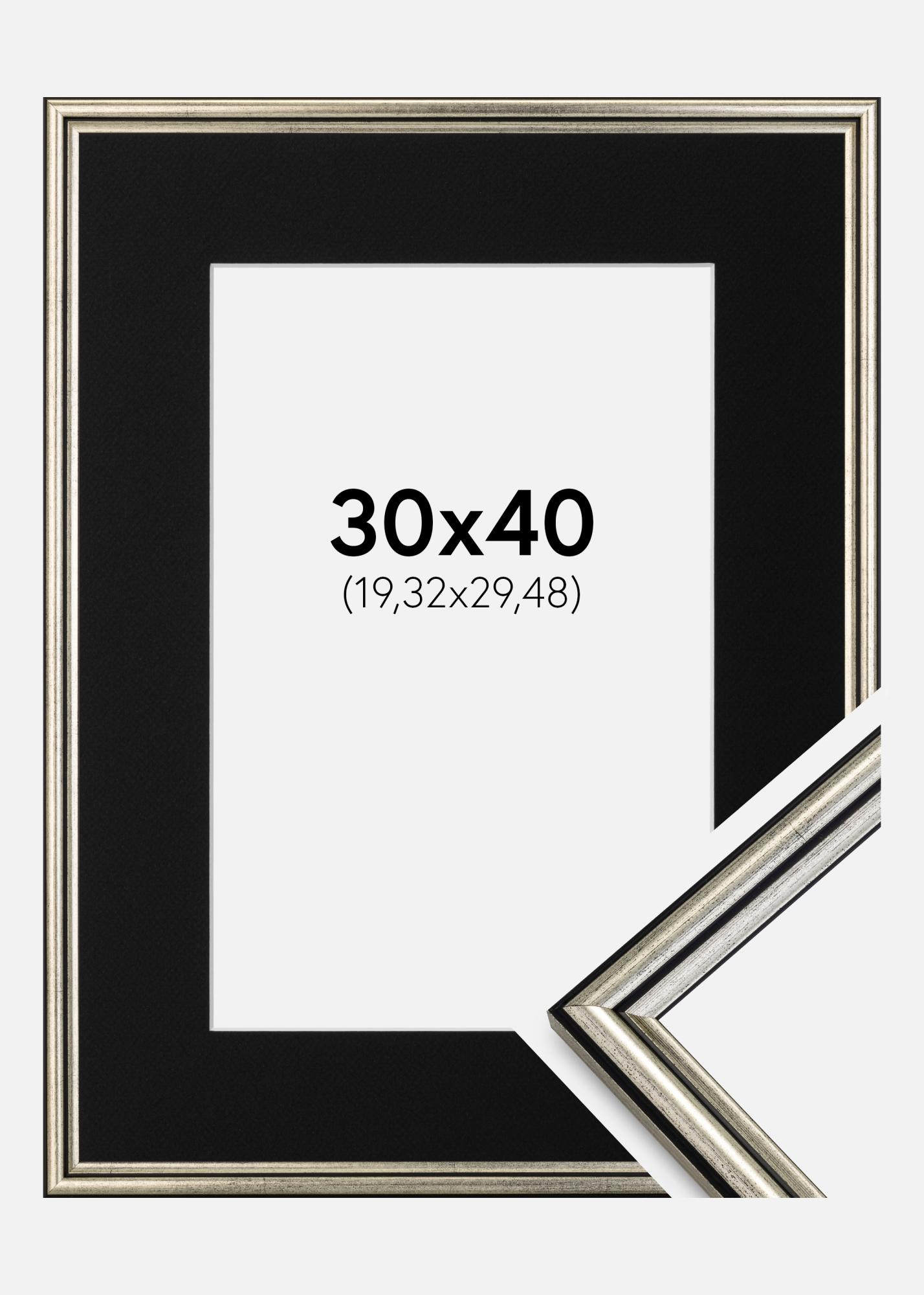 Ramă Horndal Argintiu 30x40 cm - Paspartu Negru 8x12 inches
